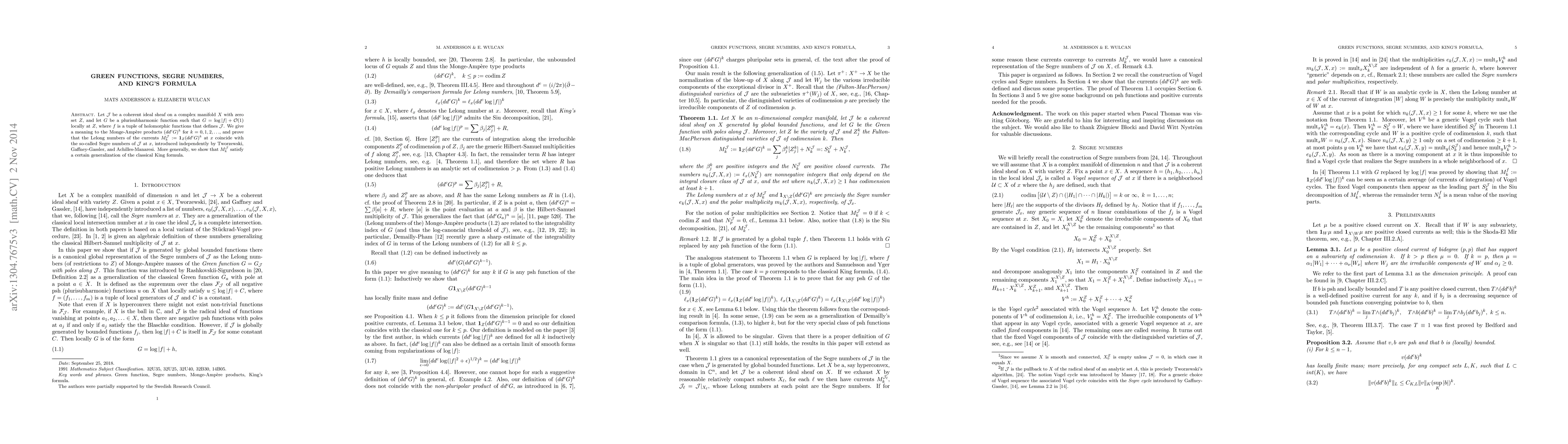 Let $\mathcal J$ be a coherent ideal sheaf on a complex manifold $X$ with zero set $Z$, and let $G$ be a plurisubharmonic function such that $G=\log|f|+\mathcal O(1)$ locally at $Z$, where $f$ is a tuple of holomorphic functions that defines $\mathcal J$. We give a meaning to the Monge-Amp\`{e}re products $(dd^c G)^k$ for $k=0,1,2,...$, and prove that the Lelong numbers of the currents $M_k^{\mathcal J}:=\mathbf 1_Z(dd^c G)^k$ at $x$ coincide with the so-called Segre numbers of $\mathcal J$ at $x$, introduced independently by Tworzewski, Gaffney-Gassler, and Achilles-Manaresi. More generally, we show that $M_k^{\mathcal J}$ satisfy a certain generalization of the classical King formula.