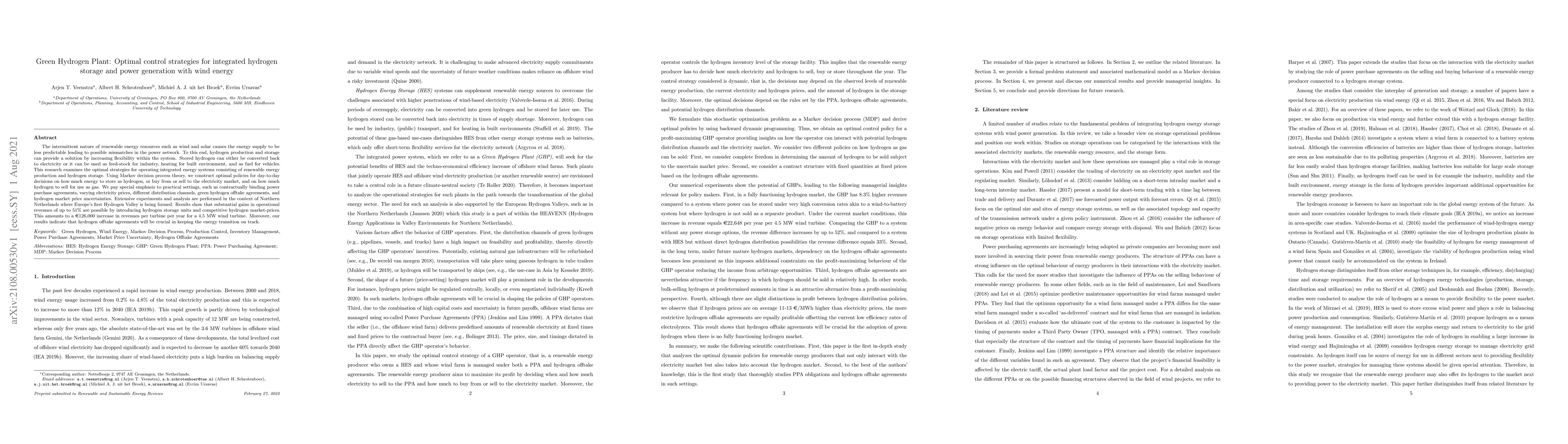 This research develops optimal control strategies for integrating hydrogen storage with wind energy systems to enhance flexibility and reliability. Using Markov decision processes, it finds that incorporating hydrogen storage can boost operational revenues by up to 51%, with a €126,000 annual increase per 4.5 MW wind turbine in Northern Netherlands, emphasizing the importance of hydrogen offtake agreements for successful energy transition.