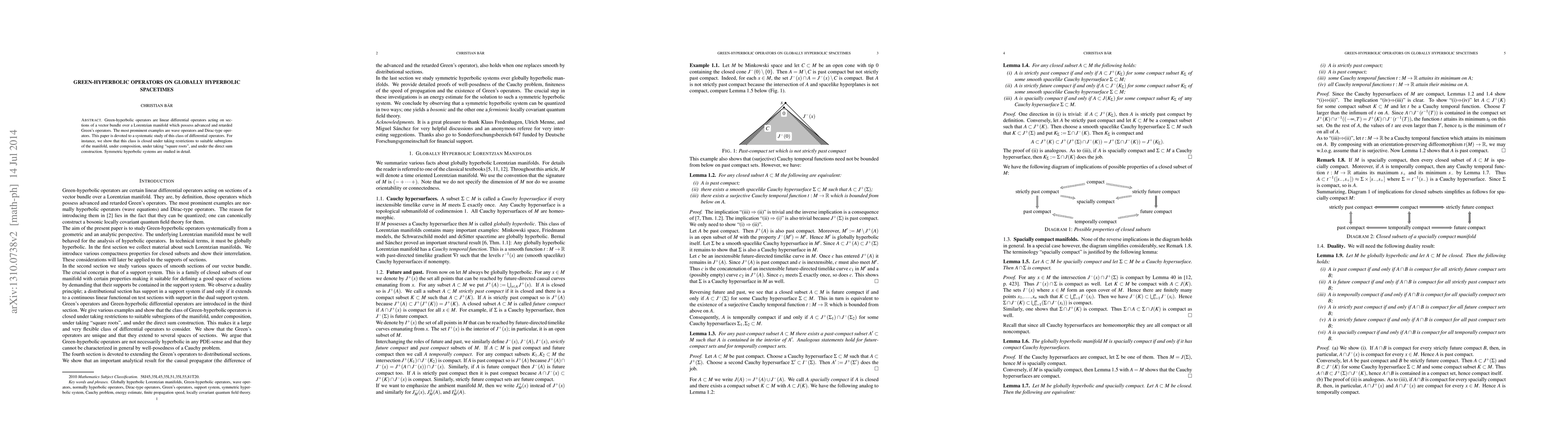 This paper systematically explores green-hyperbolic operators on globally hyperbolic spacetimes, demonstrating their properties such as closure under various operations and detailed analysis of symmetric hyperbolic systems.
