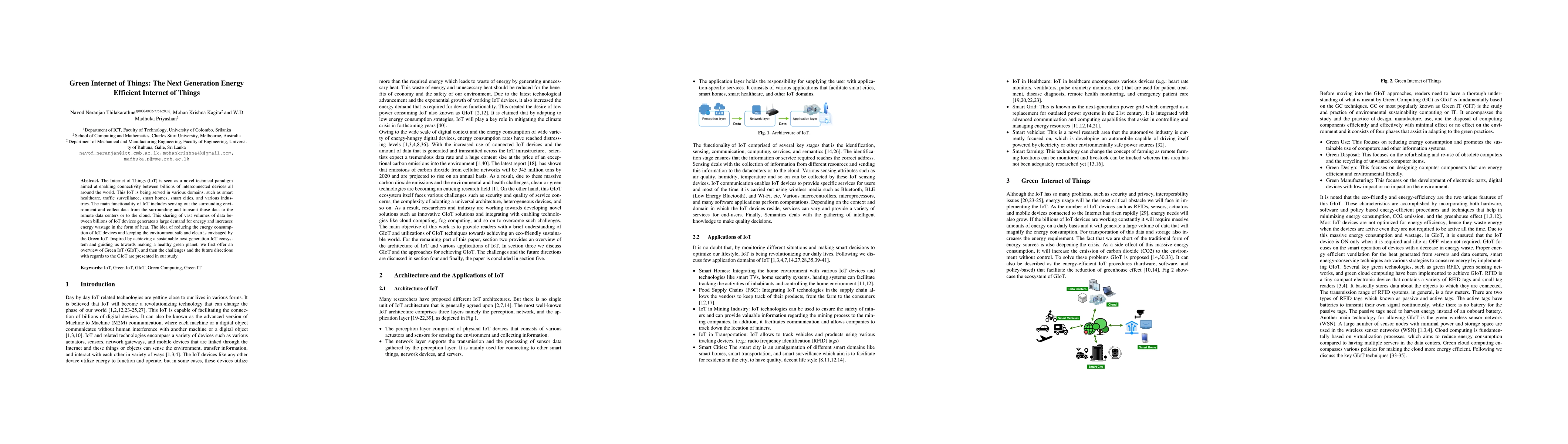 This paper provides an overview of Green Internet of Things (GIoT), focusing on reducing energy consumption to enhance sustainability and environmental safety. It discusses the challenges and future directions in developing a next-generation energy-efficient IoT ecosystem.