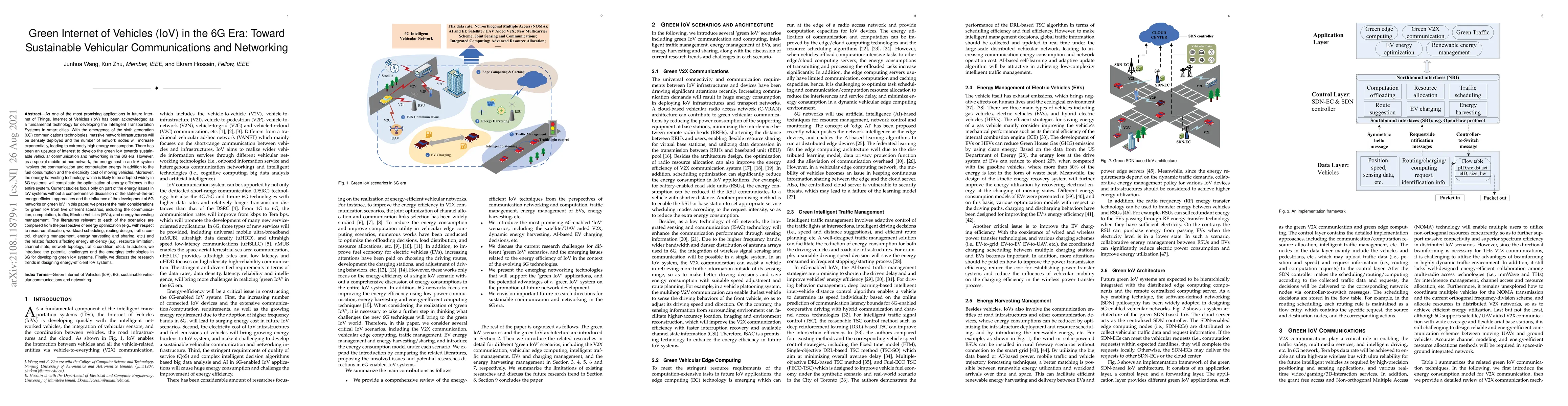 This paper explores the concept of green Internet of Vehicles (IoV) in the 6G era, focusing on sustainable vehicular communication and networking. It examines energy optimization strategies across five scenarios: communication, computation, traffic, Electric Vehicles (EVs), and energy harvesting management, highlighting challenges and emerging technologies for energy-efficient IoV systems.