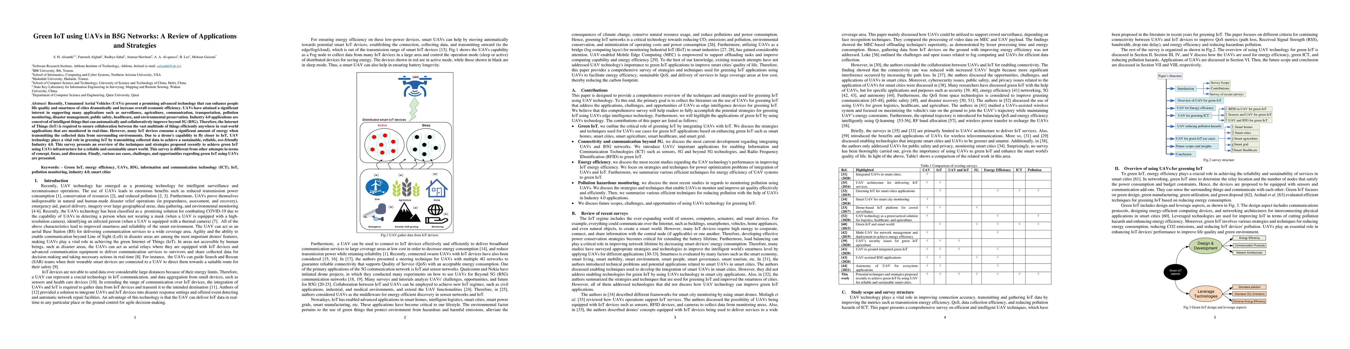 This paper reviews applications and strategies for green IoT using UAVs in B5G networks, highlighting how drones can enhance sustainability and efficiency in IoT data transmission for various sectors, including agriculture, healthcare, and environmental monitoring. It discusses the challenges and opportunities in achieving a green, reliable smart world through UAV-assisted IoT.