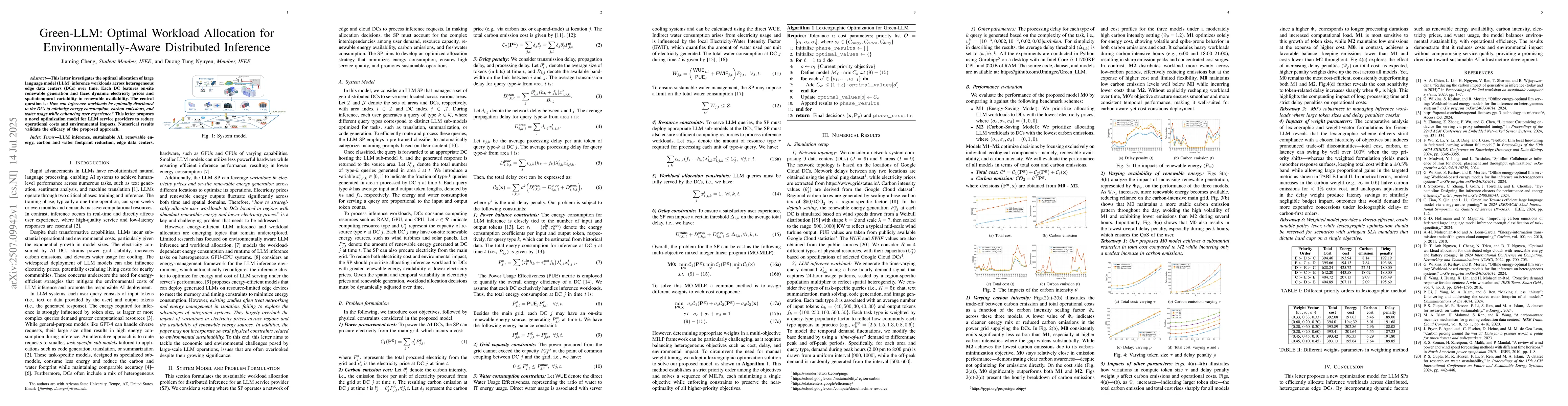 This letter investigates the optimal allocation of large language model (LLM) inference workloads across heterogeneous edge data centers (DCs) over time. Each DC features on-site renewable generation and faces dynamic electricity prices and spatiotemporal variability in renewable availability. The central question is: how can inference workloads be optimally distributed to the DCs to minimize energy consumption, carbon emissions, and water usage while enhancing user experience? This letter proposes a novel optimization model for LLM service providers to reduce operational costs and environmental impacts. Numerical results validate the efficacy of the proposed approach.