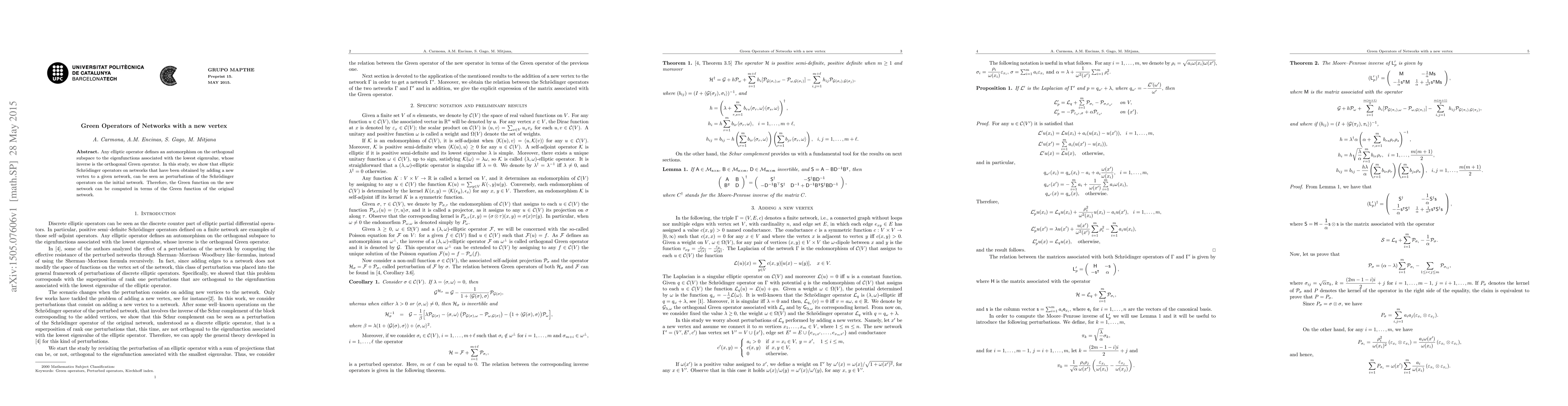 Any elliptic operator defines an automorphism on the orthogonal subspace to the eigenfunctions associated with the lowest eigenvalue, whose inverse is the orthogonal Green operator. In this study, we show that elliptic Schr\"{o}dinger operators on networks that have been obtained by adding a new vertex to a given network, can be seen as perturbations of the Schr\"{o}dinger operators on the initial network. Therefore, the Green function on the new network can be computed in terms of the Green function of the original network.