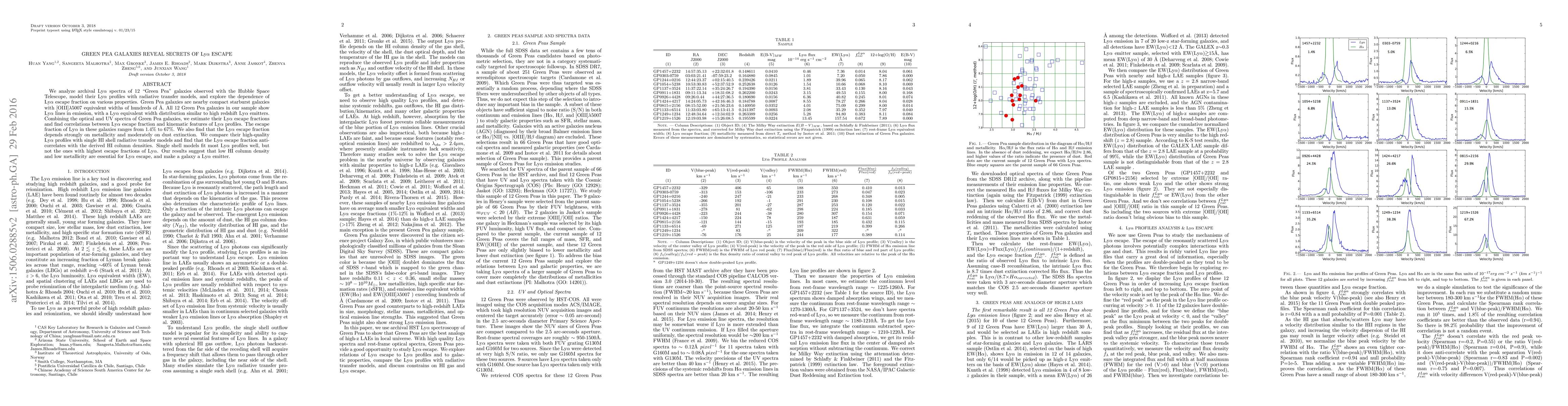 This study analyzes Ly$\alpha$ spectra of 12 Green Pea galaxies, finding that their Ly$\alpha$ escape fractions range from 1.4% to 67%. The study reveals strong correlations between Ly$\alpha$ escape fraction and metallicity, dust extinction, and HI column densities, suggesting low HI column density and low metallicity are crucial for Ly$\alpha$ emission.
