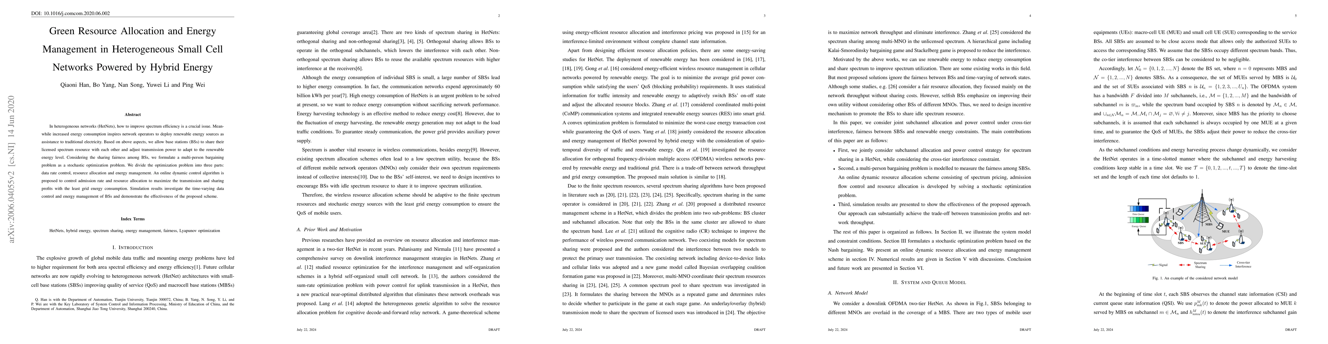 In heterogeneous networks (HetNets), how to improve spectrum efficiency is a crucial issue. Meanwhile increased energy consumption inspires network operators to deploy renewable energy sources as assistance to traditional electricity. Based on above aspects, we allow base stations (BSs) to share their licensed spectrum resource with each other and adjust transmission power to adapt to the renewable energy level. Considering the sharing fairness among BSs, we formulate a multi-person bargaining problem as a stochastic optimization problem. We divide the optimization problem into three parts: data rate control, resource allocation and energy management. An online dynamic control algorithm is proposed to control admission rate and resource allocation to maximize the transmission and sharing profits with the least grid energy consumption. Simulation results investigate the time-varying data control and energy management of BSs and demonstrate the effectiveness of the proposed scheme.