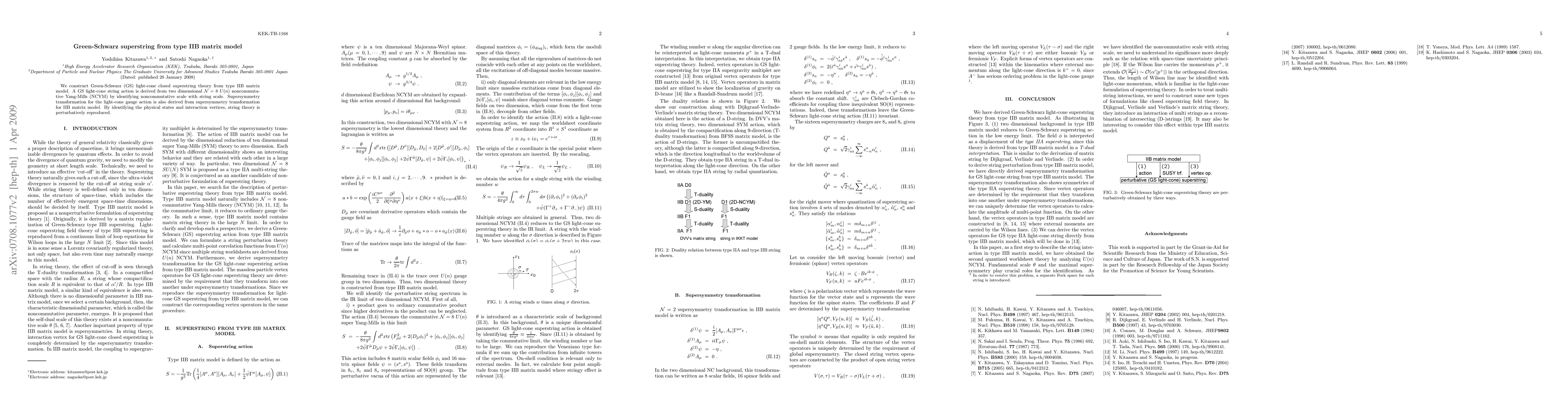 This paper constructs Green-Schwarz light-cone closed superstring theory from type IIB matrix model, deriving a GS light-cone string action from two-dimensional N=8 U(n) noncommutative Yang-Mills, and demonstrating perturbative reproduction of string theory through identified physical states and interaction vertices.