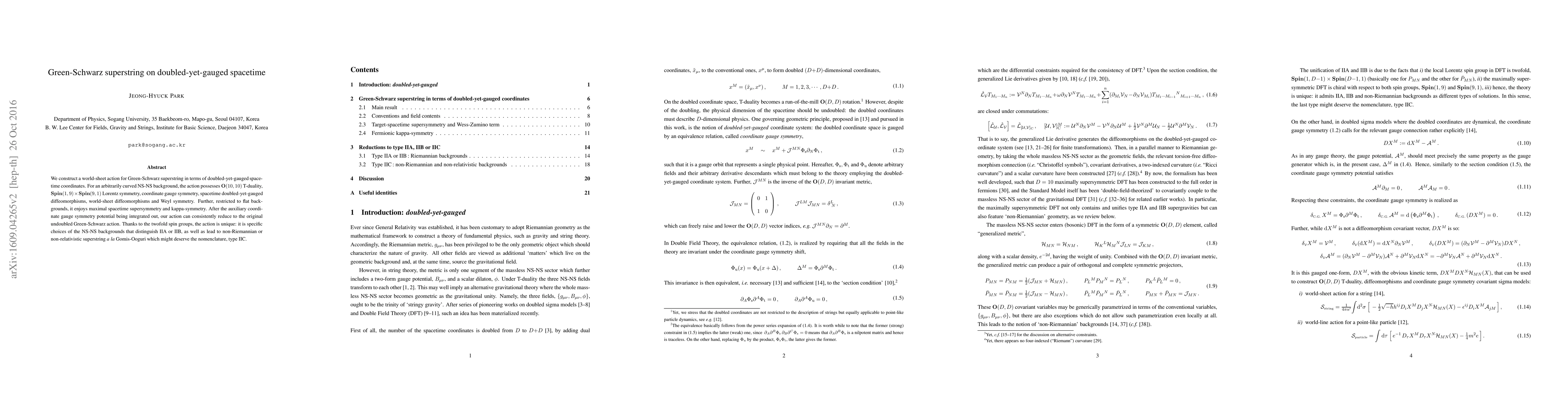 We construct a world-sheet action for Green-Schwarz superstring in terms of doubled-yet-gauged spacetime coordinates. For an arbitrarily curved NS-NS background, the action possesses $\mathbf{O}(10,10)$ T-duality, $\mathbf{Spin}(1,9)\times\mathbf{Spin}(9,1)$ Lorentz symmetry, coordinate gauge symmetry, spacetime doubled-yet-gauged diffeomorphisms, world-sheet diffeomorphisms and Weyl symmetry. Further, restricted to flat backgrounds, it enjoys maximal spacetime supersymmetry and kappa-symmetry. After the auxiliary coordinate gauge symmetry potential being integrated out, our action can consistently reduce to the original undoubled Green-Schwarz action. Thanks to the twofold spin groups, the action is unique: it is specific choices of the NS-NS backgrounds that distinguish IIA or IIB, as well as lead to non-Riemannian or non-relativistic superstring a la Gomis-Ooguri which might deserve the nomenclature, type IIC.