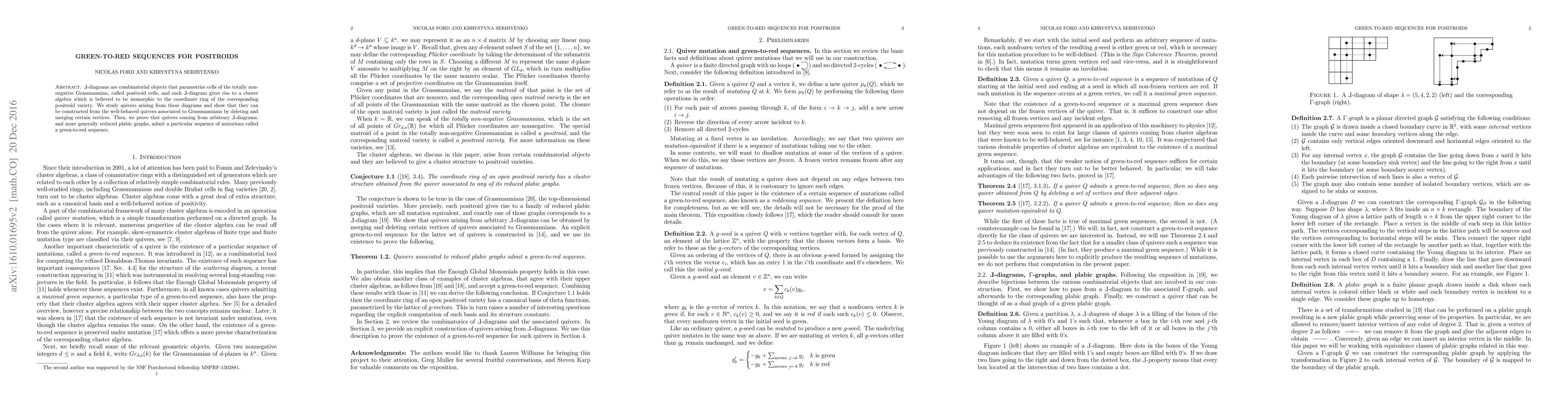 Le-diagrams are combinatorial objects that parametrize cells of the totally nonnegative Grassmannian, called positroid cells, and each Le-diagram gives rise to a cluster algebra which is believed to be isomorphic to the coordinate ring of the corresponding positroid variety. We study quivers arising from these diagrams and show that they can be constructed from the well-behaved quivers associated to Grassmannians by deleting and merging certain vertices. Then, we prove that quivers coming from arbitrary Le-diagrams, and more generally reduced plabic graphs, admit a particular sequence of mutations called a green-to-red sequence.