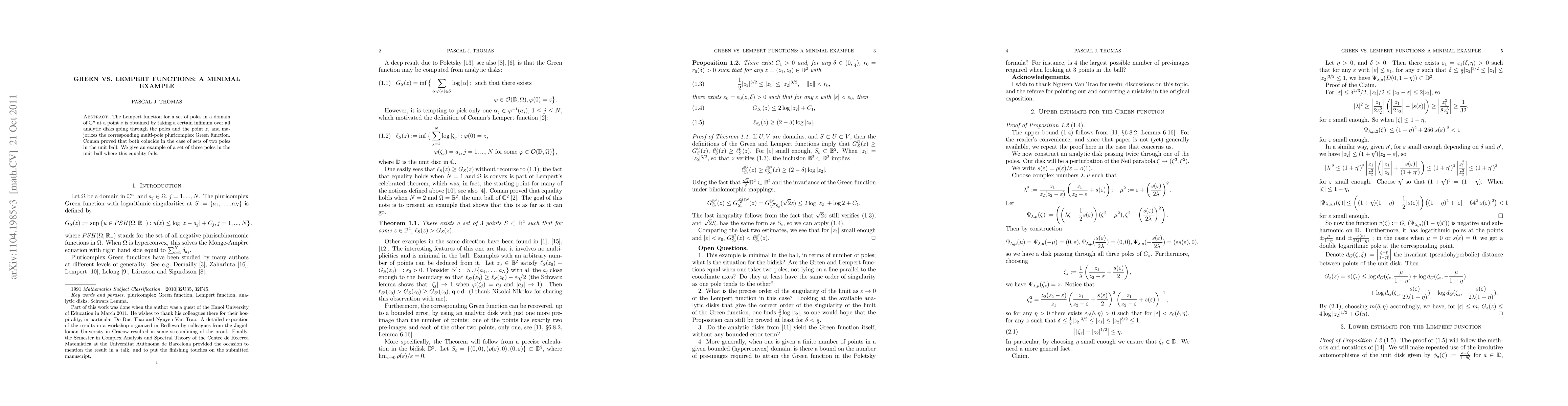 This paper demonstrates that the Lempert function and the multi-pole pluricomplex Green function, which coincide for two poles in the unit ball, diverge for a set of three poles in the unit ball. This provides a minimal example of their non-equivalence.