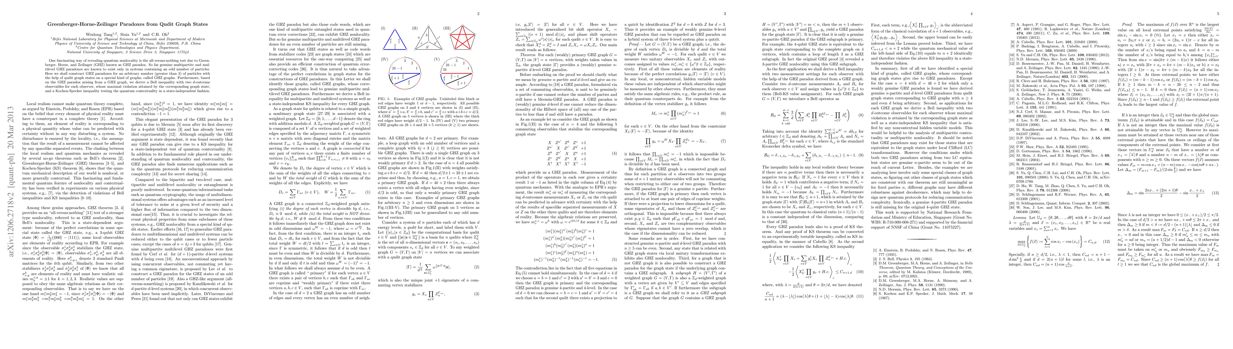This paper constructs Greenberger-Horne-Zeilinger (GHZ) paradoxes for any number of particles greater than three using qudit graph states on GHZ graphs. It derives a Bell inequality and a Kochen-Specker inequality to test quantum nonlocality and contextuality.