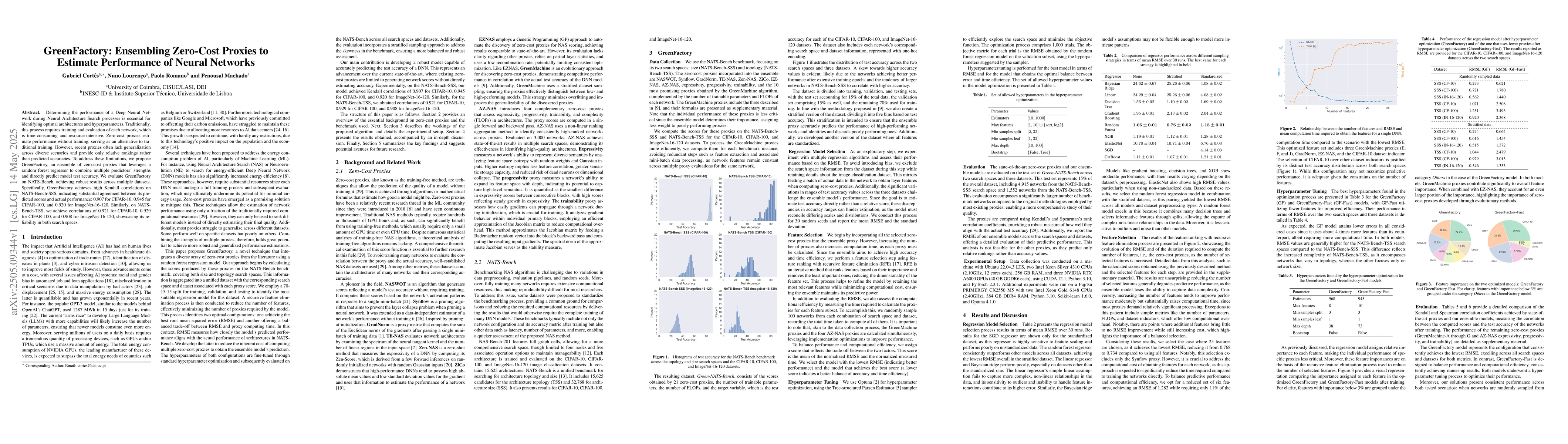 This paper proposes GreenFactory, an ensemble of zero-cost proxies that accurately estimate performance of neural networks without training, achieving high correlations across multiple datasets.