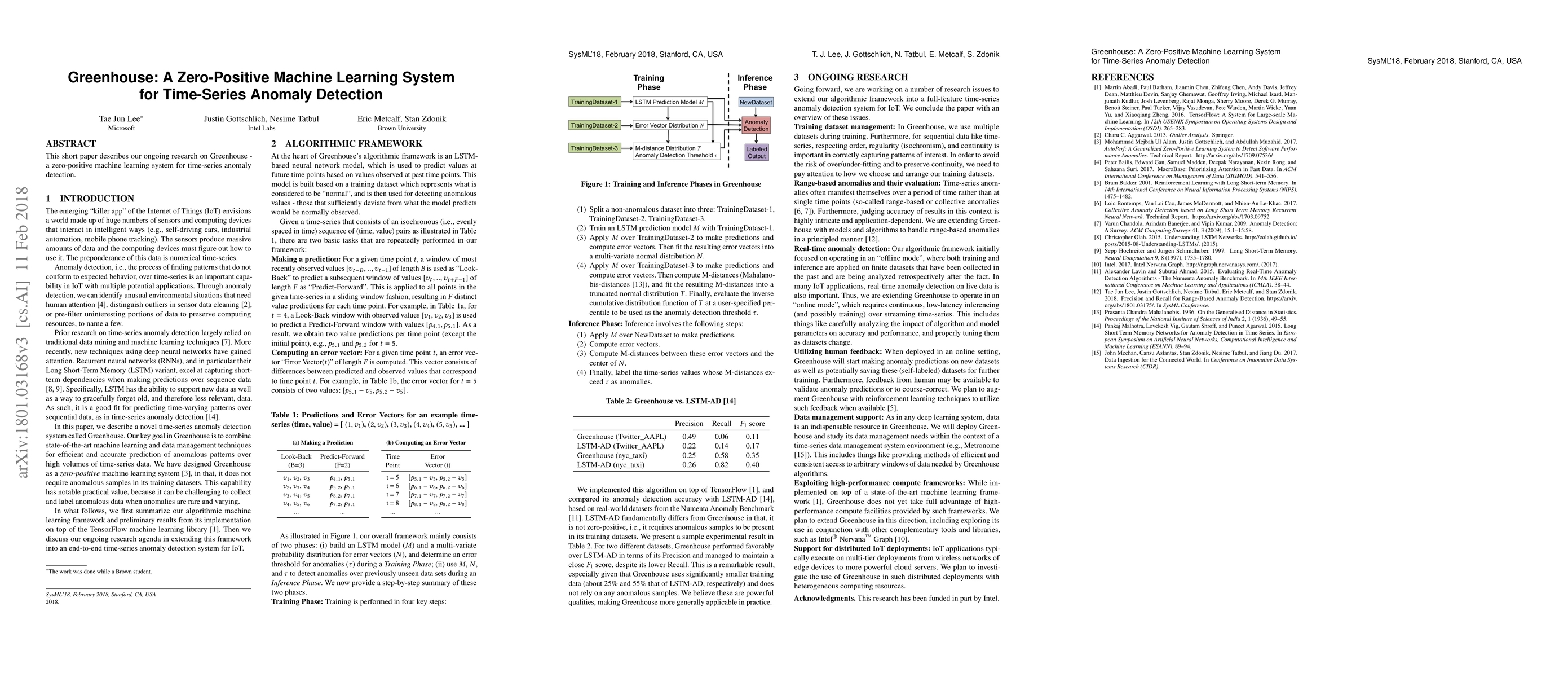 This short paper describes our ongoing research on Greenhouse - a zero-positive machine learning system for time-series anomaly detection.