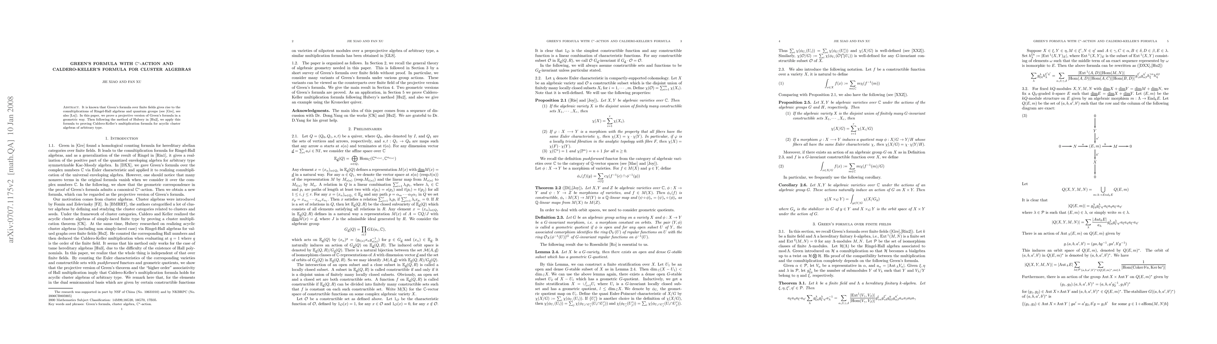 It is known that Green's formula over finite fields gives rise to the comultiplications of Ringel-Hall algebras and quantum groups (see\cite{Green}, also see \cite{Lusztig}). In this paper, we deduce the projective version of Green's formula in a geometric way. Then following the method of Hubery in \cite{Hubery2005}, we apply this formula to proving Caldero-Keller's multiplication formula for acyclic cluster algebras of arbitrary type.