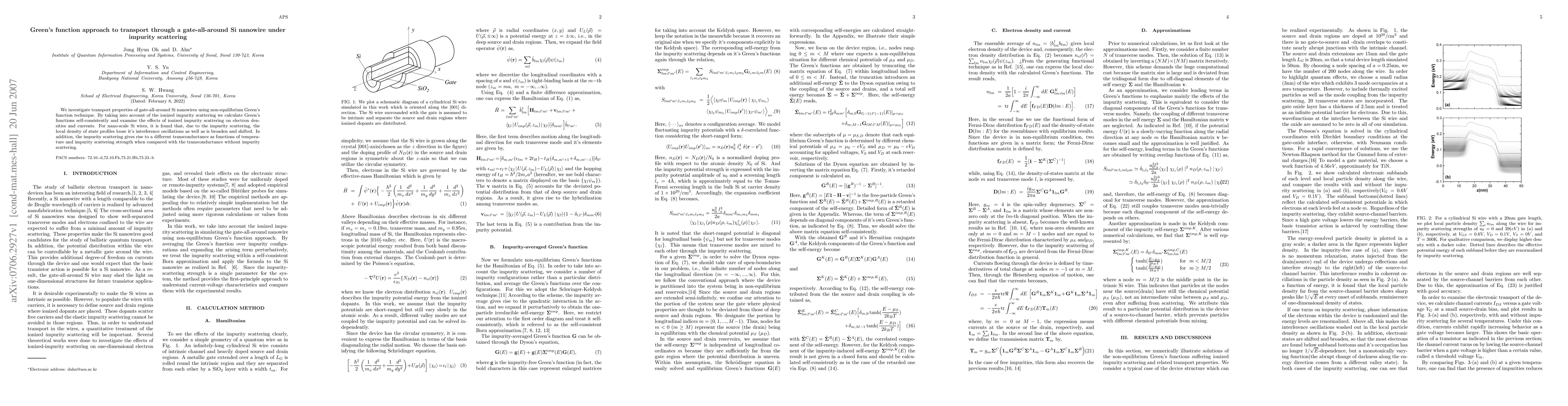 We investigate transport properties of gate-all-around Si nanowires using non-equilibrium Green's function technique. By taking into account of the ionized impurity scattering we calculate Green's functions self-consistently and examine the effects of ionized impurity scattering on electron densities and currents. For nano-scale Si wires, it is found that, due to the impurity scattering, the local density of state profiles loose it's interference oscillations as well as is broaden and shifted. In addition, the impurity scattering gives rise to a different transconductance as functions of temperature and impurity scattering strength when compared with the transconductance without impurity scattering.