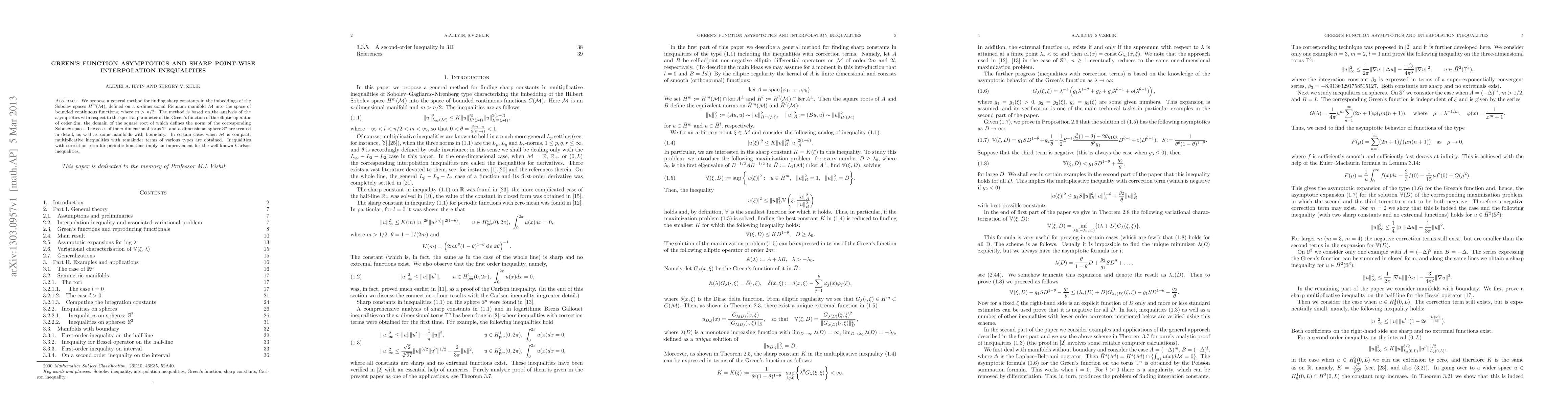 We propose a general method for finding sharp constants in the imbeddings of the Hilbert Sobolev spaces of order m defined on a n-dimensional Riemann manifold into the space of bounded continuous functions, where m>n/2. The method is based on the analysis of the asymptotics with respect to the spectral parameter of the Green's function of the elliptic operator of order 2m, the domain of the square root of which defines the norm of the corresponding Sobolev space. The cases of the n-dimensional torus and n-dimensional sphere are treated in detail, as well as some manifolds with boundary. In certain cases when the manifold is compact, multiplicative inequalities with remainder terms of various types are obtained. Inequalities with correction term for periodic functions imply an improvement for the well-known Carlson inequalities.