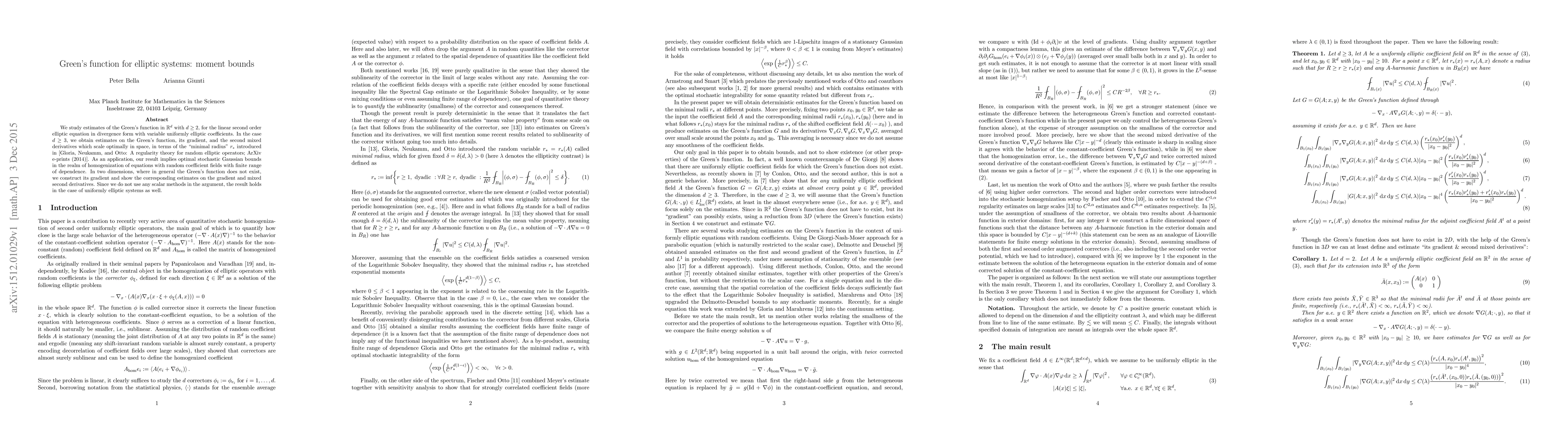 This paper provides optimal moment bounds for the Green's function and its derivatives for linear second-order elliptic systems in $\mathbb{R}^d$ with $d \ge 2$, using a minimal radius approach. In higher dimensions, the estimates are shown to scale optimally, while in two dimensions, the gradient of the Green's function is constructed and similarly bounded.