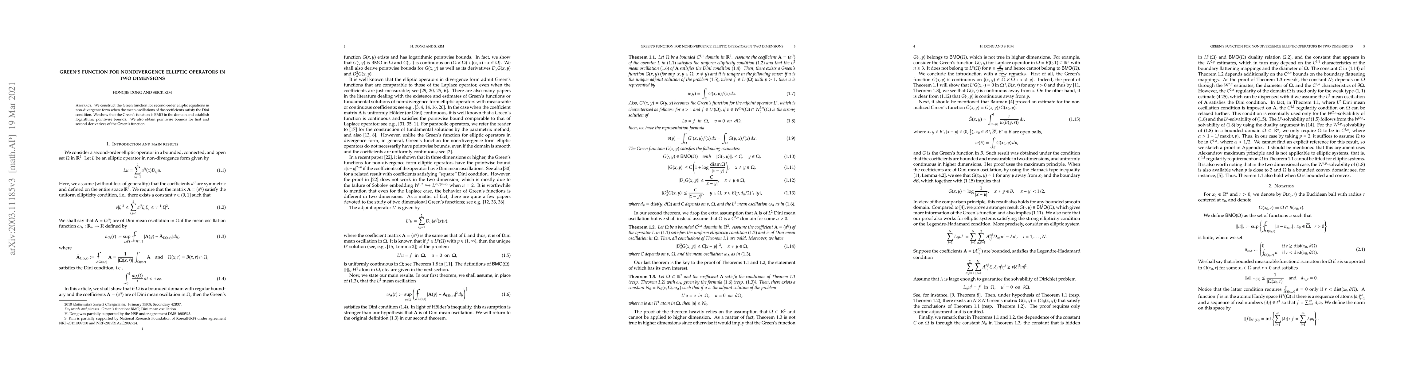 This paper constructs the Green's function for second-order elliptic equations in non-divergence form under Dini condition constraints, proving it is BMO in the domain and establishing logarithmic pointwise bounds, along with bounds for first and second derivatives.
