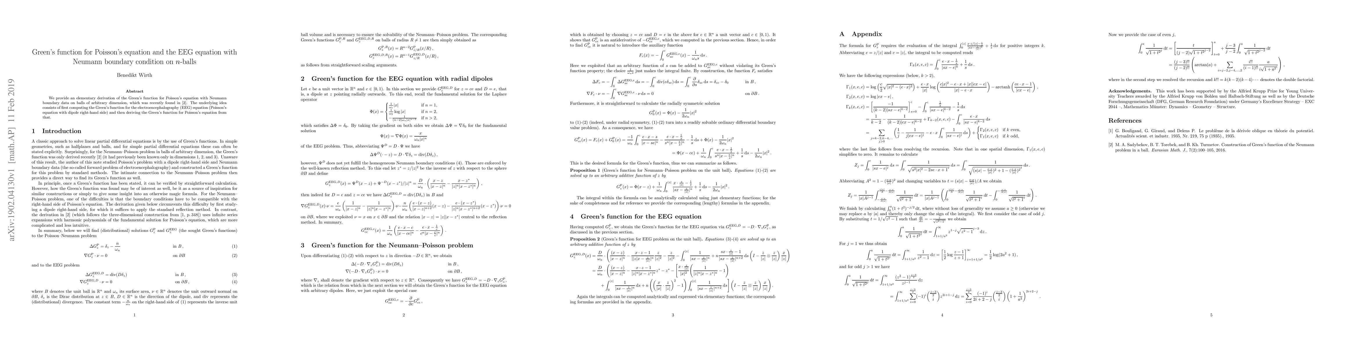 This paper derives the Green's function for Poisson's equation with Neumann boundary conditions on n-balls, starting from the EEG equation's Green's function and extending the result to the general case. The method is elementary and builds on recent findings from Sadybekov et al. (2016).