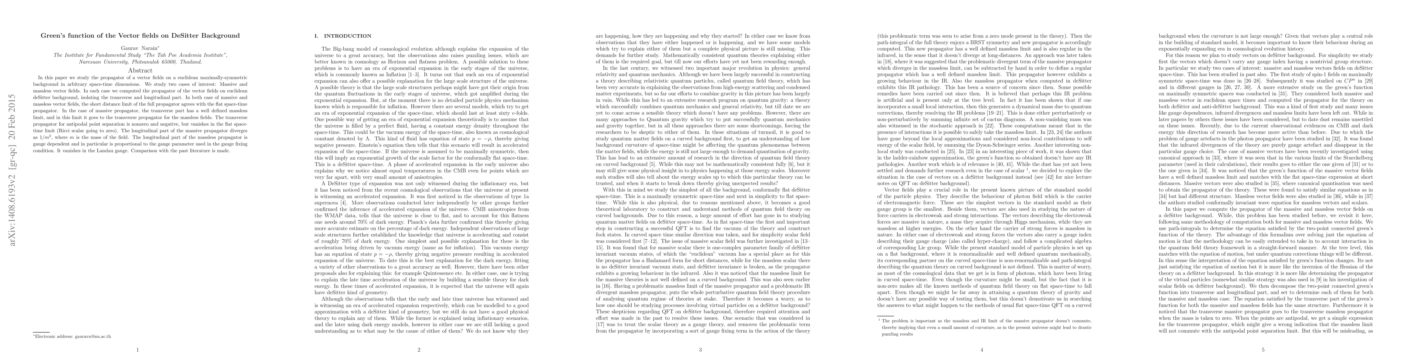 In this paper we study the propagator of a vector fields on a euclidean maximally-symmetric background in arbitrary space-time dimensions. We study two cases of interest: Massive and massless vector fields. In each case we computed the propagator of the vector fields on euclidean deSitter background, isolating the transverse and longitudinal part. In both case of massive and massless vector fields, the short distance limit of the full propagator agrees with the flat space-time propagator. In the case of massive propagator, the transverse part has a well defined massless limit, and in this limit it goes to the transverse propagator for the massless fields. The transverse propagator for antipodal point separation is nonzero and negative, but vanishes in the flat space-time limit (Ricci scalar going to zero). The longitudinal part of the massive propagator diverges as $1/m^2$, where $m$ is the mass of the field. The longitudinal part of the massless propagator is gauge dependent and in particular is proportional to the gauge parameter used in the gauge fixing condition. It vanishes in the Landau gauge. Comparison with the past literature is made.