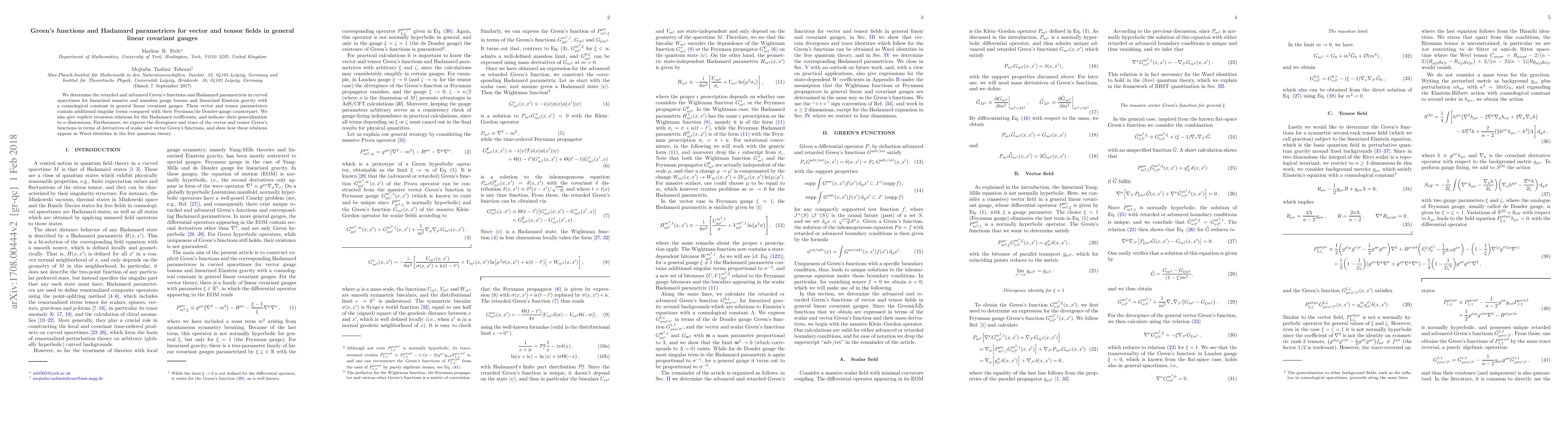 This research paper derives retarded and advanced Green's functions and Hadamard parametrices for linearized gauge bosons and Einstein gravity in curved spacetimes under general linear covariant gauges. It also presents recursion relations for Hadamard coefficients, and shows how Green's function divergences and traces relate to scalar/vector Green's functions as Ward identities in quantum theory.