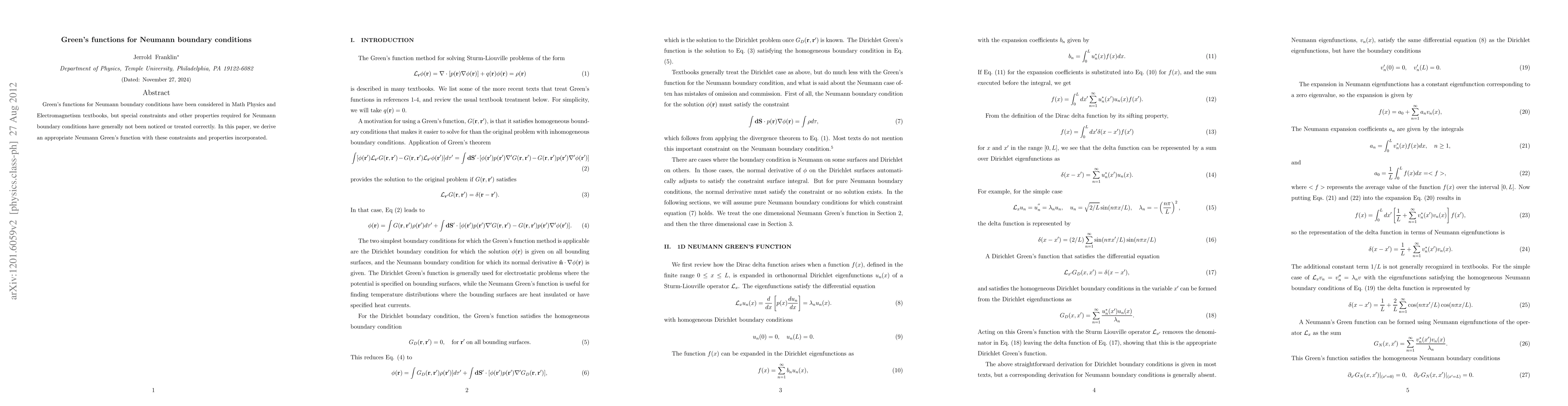 This paper derives a Neumann Green's function that correctly incorporates the special constraints and properties required for Neumann boundary conditions, addressing previous oversights in mathematical physics and electromagnetism.