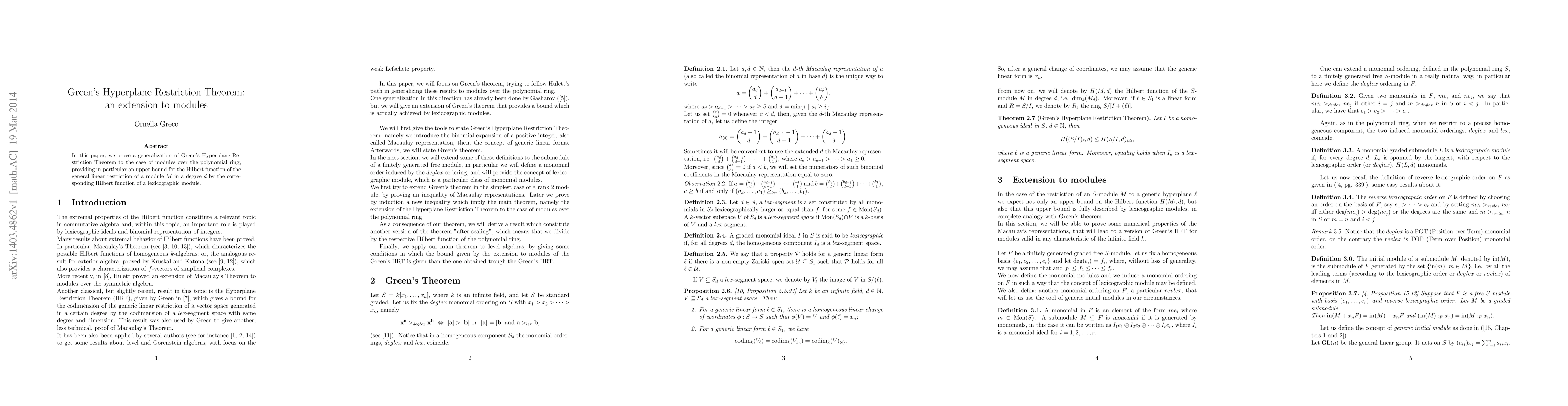 In this paper, we prove a generalization of Green's Hyperplane Restriction Theorem to the case of modules over the polynomial ring, providing in particular an upper bound for the Hilbert function of the general linear restriction of a module M in a degree d by the corresponding Hilbert function of a lexicographic module.