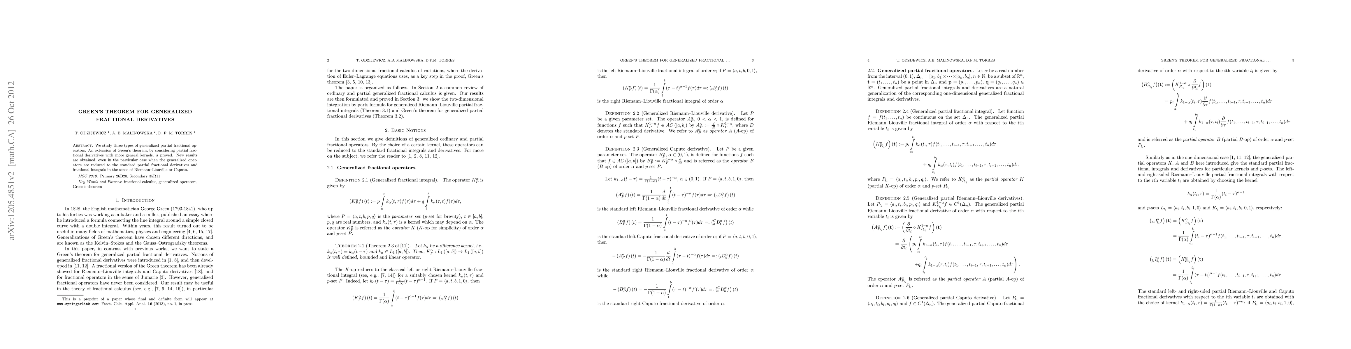 This paper extends Green's theorem to incorporate three types of generalized partial fractional derivatives, proving new results even when these operators revert to standard Riemann-Liouville or Caputo fractional derivatives. The study introduces novel insights into fractional calculus applications.