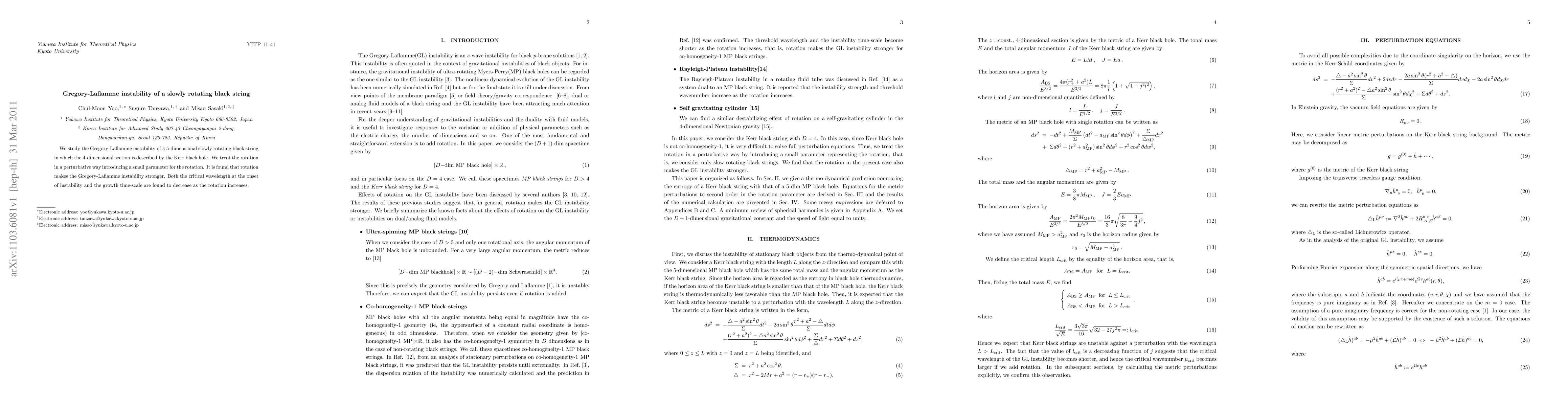 This paper investigates the Gregory-Laflamme instability in a 5D slowly rotating black string, revealing that rotation enhances the instability, reducing the critical wavelength and growth time-scale with increasing rotation.