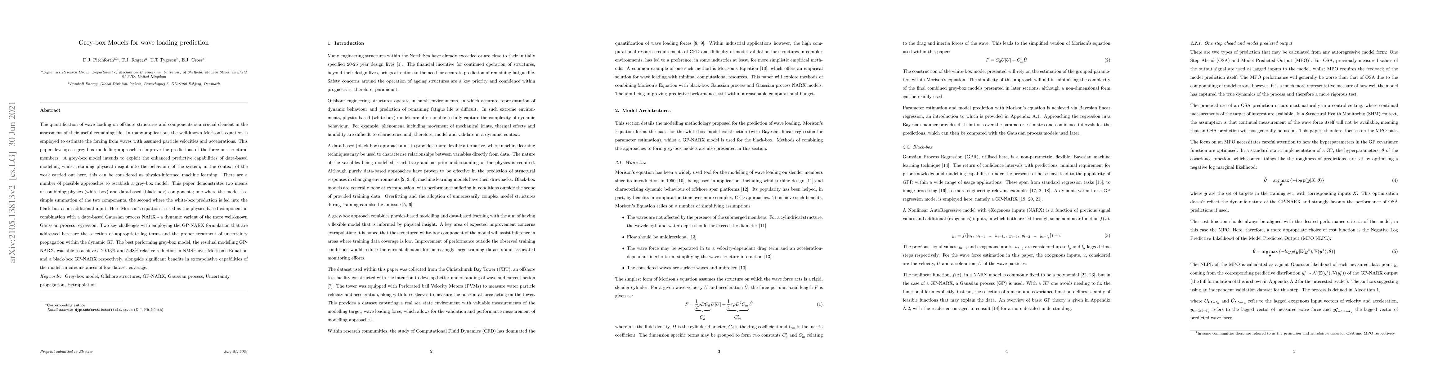 This paper develops a grey-box modeling approach to improve wave loading predictions on offshore structures, combining physics-informed machine learning with Morison's equation, achieving significant reductions in NMSE and improvements in extrapolative capabilities.