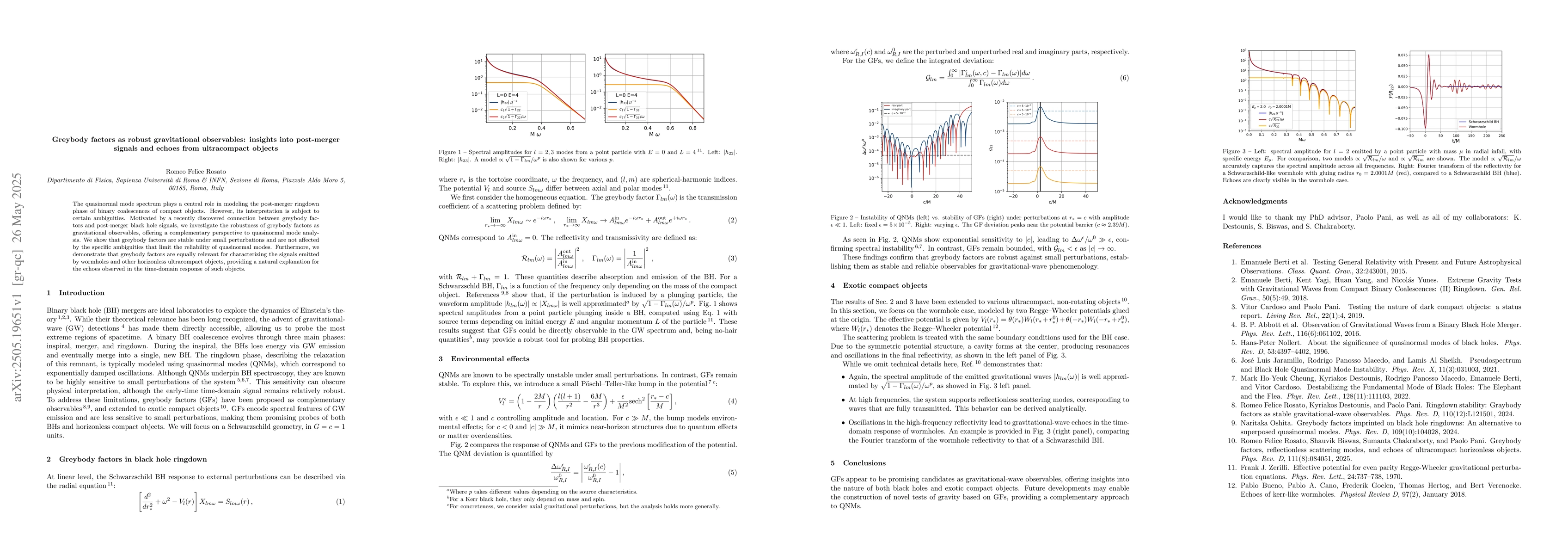 The paper establishes greybody factors as robust gravitational observables, providing a new approach to understanding post-merger signals and echoes from ultracompact objects.