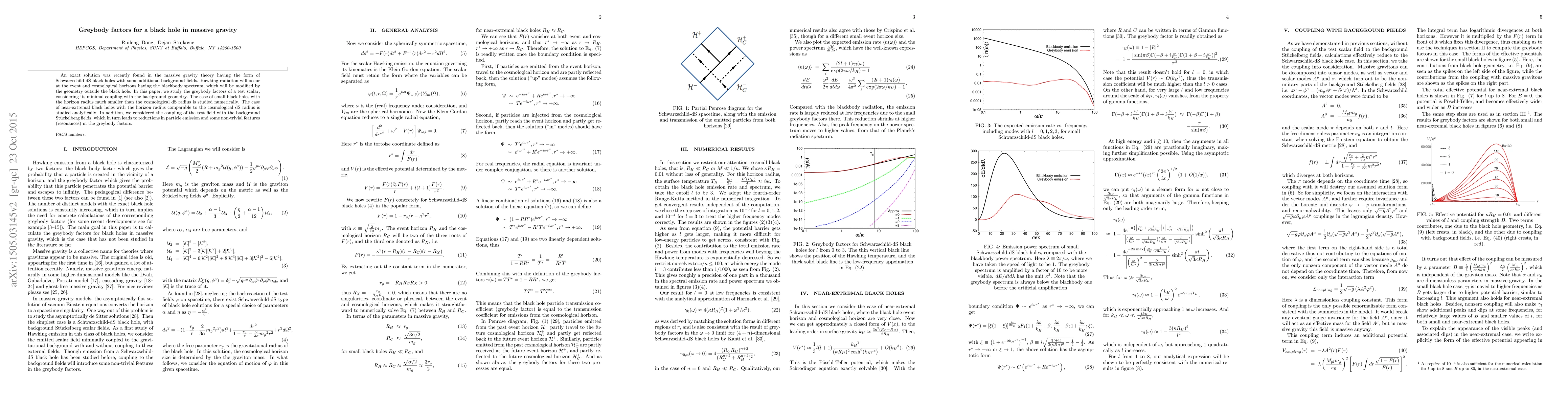 This paper investigates the greybody factors for a black hole in massive gravity, focusing on test scalar radiation. It analytically examines near-extremal black holes and numerically studies small black holes, revealing modifications in Hawking radiation due to the background geometry and St\"uckelberg fields.