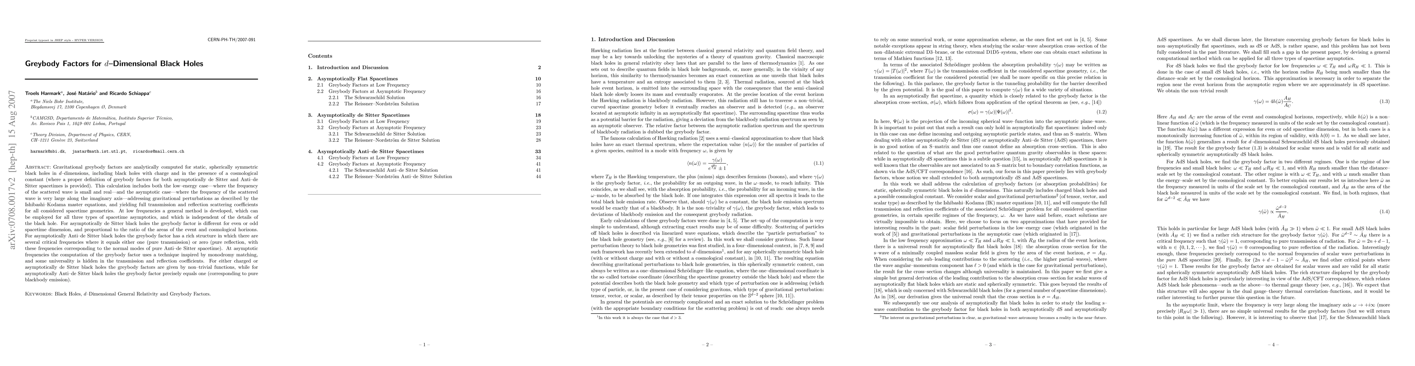 Researchers have calculated gravitational greybody factors for d-dimensional black holes, including those with charge and in various spacetime geometries, revealing new insights into the behavior of blackbody radiation.