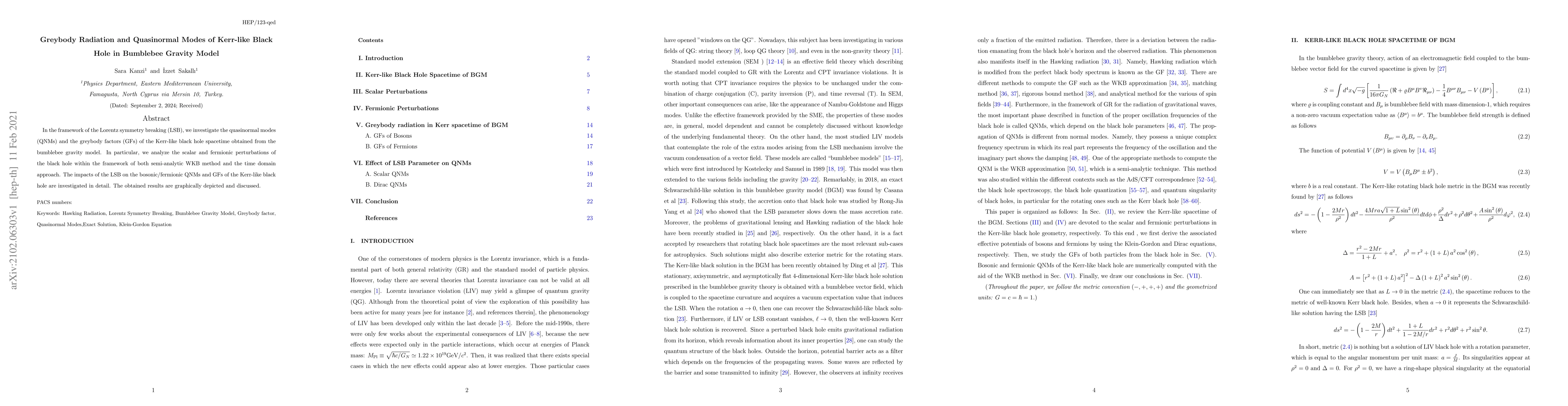 This research explores the quasinormal modes (QNMs) and greybody factors (GFs) of a Kerr-like black hole in the bumblebee gravity model, focusing on Lorentz symmetry breaking effects. Both semi-analytic WKB and time domain methods are used to analyze scalar and fermionic perturbations, with results illustrating the influence of symmetry breaking on the black hole's perturbations.