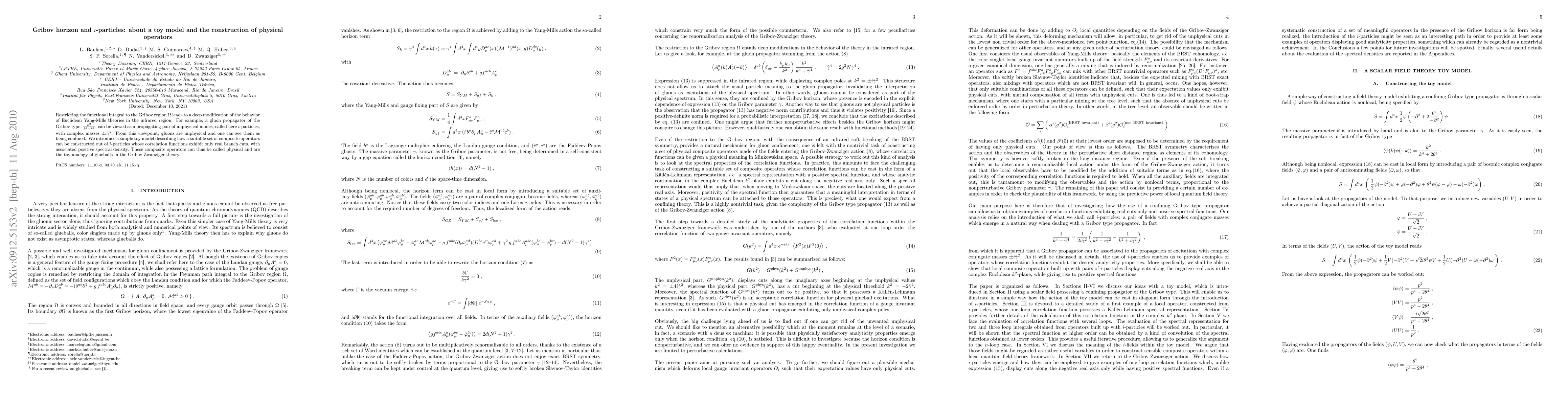 The paper proposes a toy model to address the Gribov horizon issue in Euclidean Yang-Mills theories. It suggests gluons are unphysical, likening them to 'i-particles' with complex masses. These 'i-particles' give rise to a modified gluon propagator, and through a set of composite operators, the authors construct 'physical' operators, akin to glueballs, with real spectral density and no unphysical branch cuts.