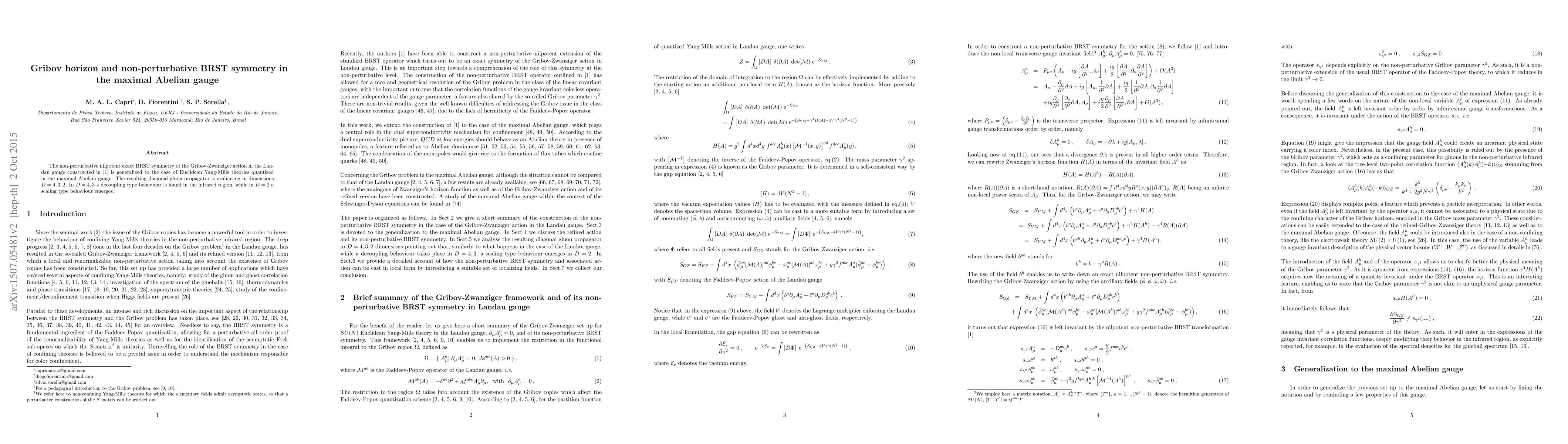 Summary: This paper generalizes the non-perturbative BRST symmetry of the Gribov-Zwanziger action to the maximal Abelian gauge, revealing decoupling behavior in D=4,3 and scaling behavior in D=2 for the diagonal gluon propagator.