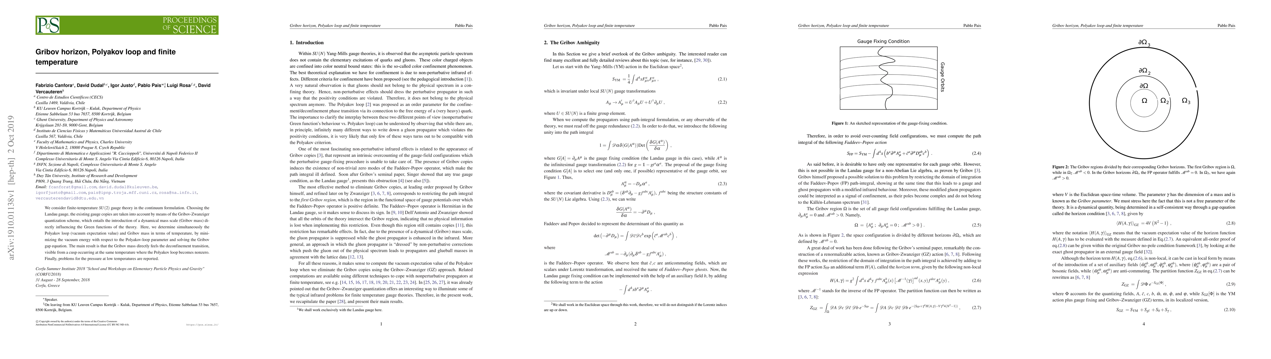 This paper investigates finite-temperature $SU(2)$ gauge theory using the Gribov-Zwanziger quantization scheme, revealing that the Gribov mass exhibits a cusp at the deconfinement transition temperature where the Polyakov loop becomes nonzero, indicating a direct link between the Gribov mass and the phase transition. Issues with low-temperature pressure calculations are also noted.