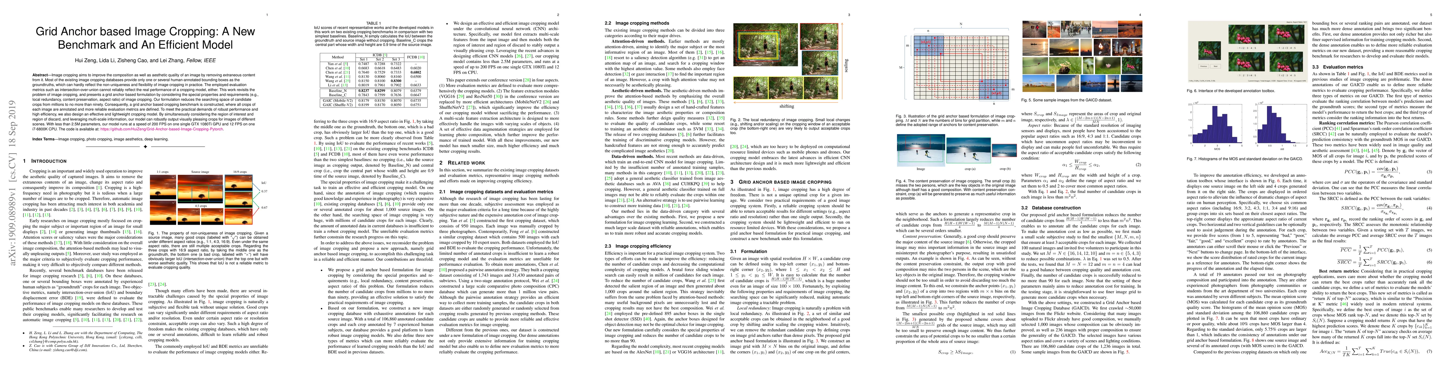 This paper proposes a grid anchor-based image cropping method that efficiently reduces search space to 90 options, achieving visually pleasing crops with robust performance and high efficiency.