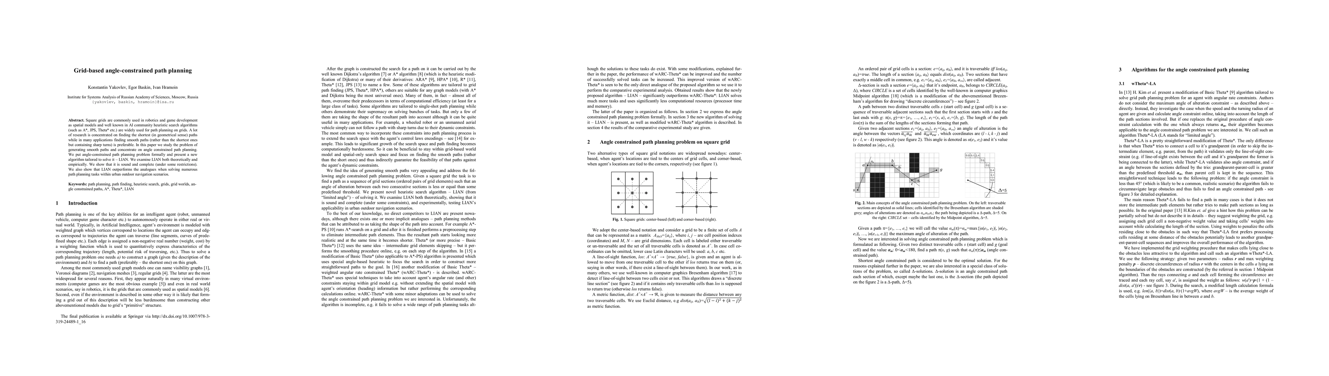 Square grids are commonly used in robotics and game development as spatial models and well known in AI community heuristic search algorithms (such as A*, JPS, Theta* etc.) are widely used for path planning on grids. A lot of research is concentrated on finding the shortest (in geometrical sense) paths while in many applications finding smooth paths (rather than the shortest ones but containing sharp turns) is preferable. In this paper we study the problem of generating smooth paths and concentrate on angle constrained path planning. We put angle-constrained path planning problem formally and present a new algorithm tailored to solve it - LIAN. We examine LIAN both theoretically and empirically. We show that it is sound and complete (under some restrictions). We also show that LIAN outperforms the analogues when solving numerous path planning tasks within urban outdoor navigation scenarios.