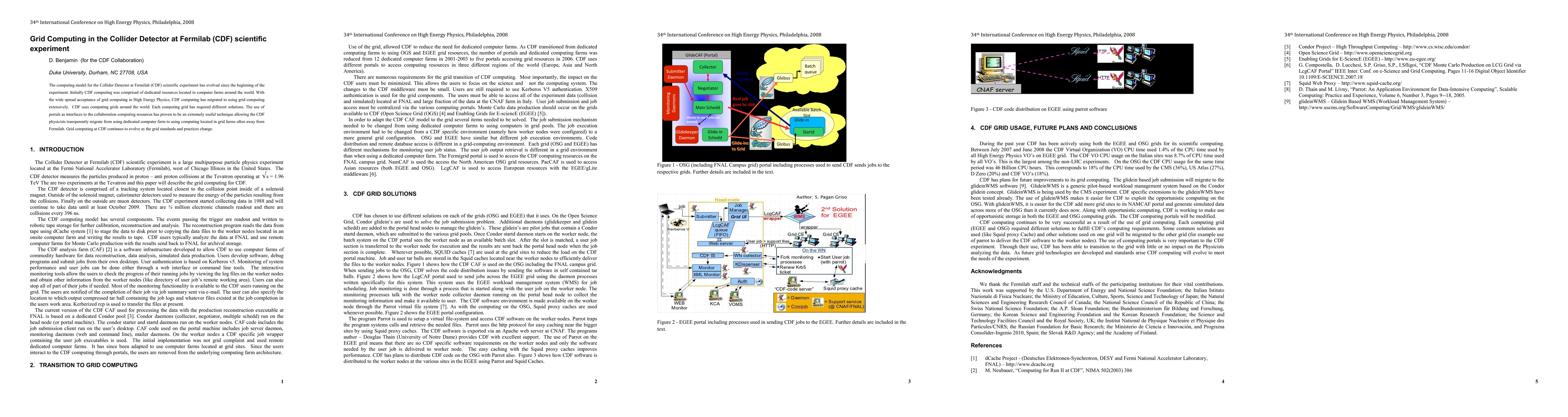 The CDF experiment at Fermilab transitioned from dedicated computing resources to a grid computing model, utilizing worldwide computing grids and portals for seamless resource access. This shift continues to adapt as grid standards evolve.