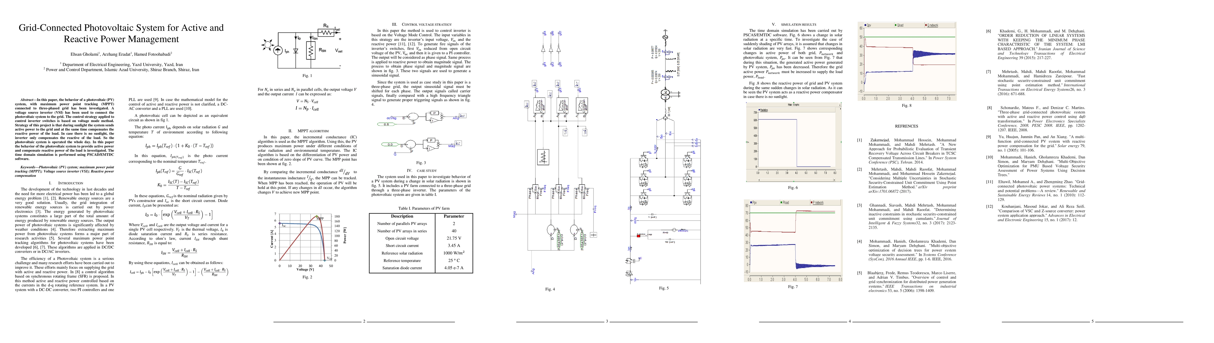 This paper investigates a grid-connected photovoltaic (PV) system with maximum power point tracking (MPPT) that uses a voltage source inverter (VSI) to manage active and reactive power. The system sends active power to the grid during sunlight while compensating for load reactive power, and only compensates reactive power when sunlight is absent. Simulation results are obtained using PSCAD/EMTDC software.