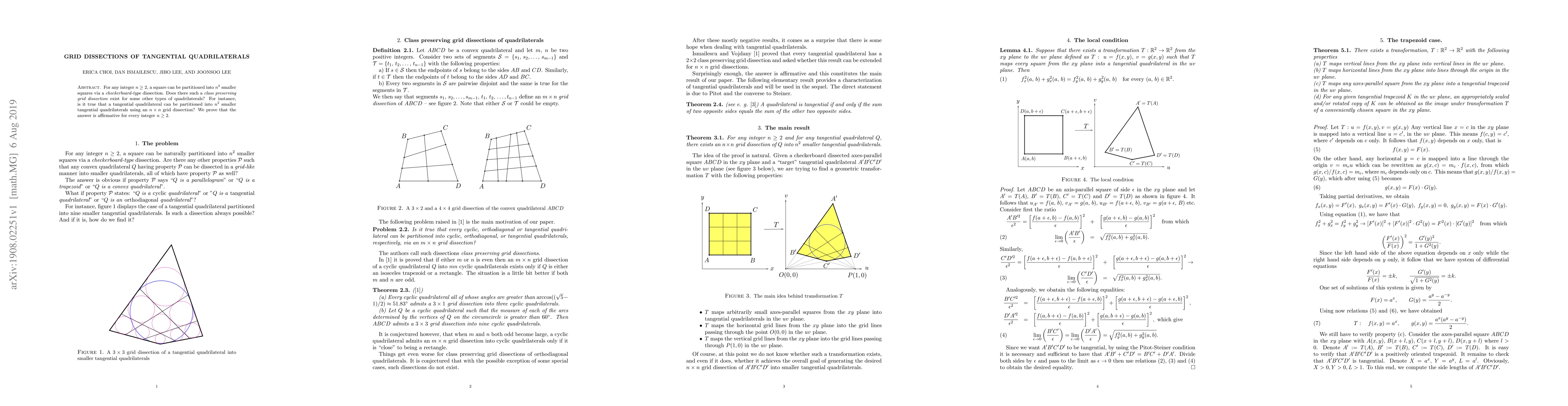 For any integer $n\ge 2$, a square can be partitioned into $n^2$ smaller squares via a checkerboard-type dissection. Does there such a class-preserving grid dissection exist for some other types of quadrilaterals? For instance, is it true that a tangential quadrilateral can be partitioned into $n^2$ smaller tangential quadrilaterals using an $n\times n$ grid dissection? We prove that the answer is affirmative for every integer $n\ge 2$.