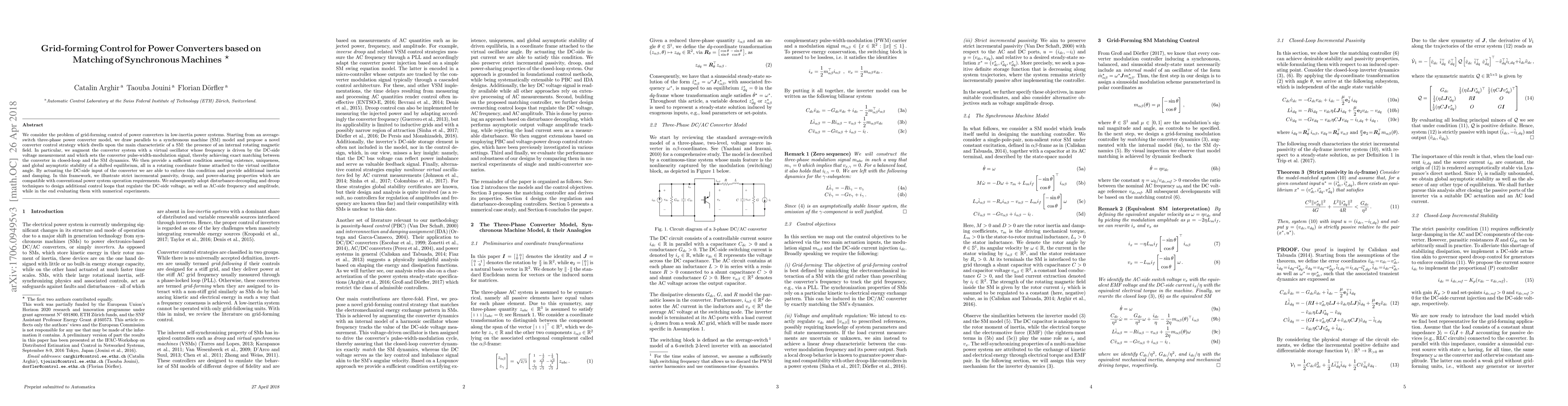 This paper proposes a novel grid-forming control strategy for power converters in low-inertia systems by matching the dynamics of synchronous machines. The strategy employs a virtual oscillator to achieve exact synchronization, ensuring stability, passivity, and power-sharing, while additional control loops manage DC-side voltage and AC-side frequency/amplitude through disturbance decoupling.