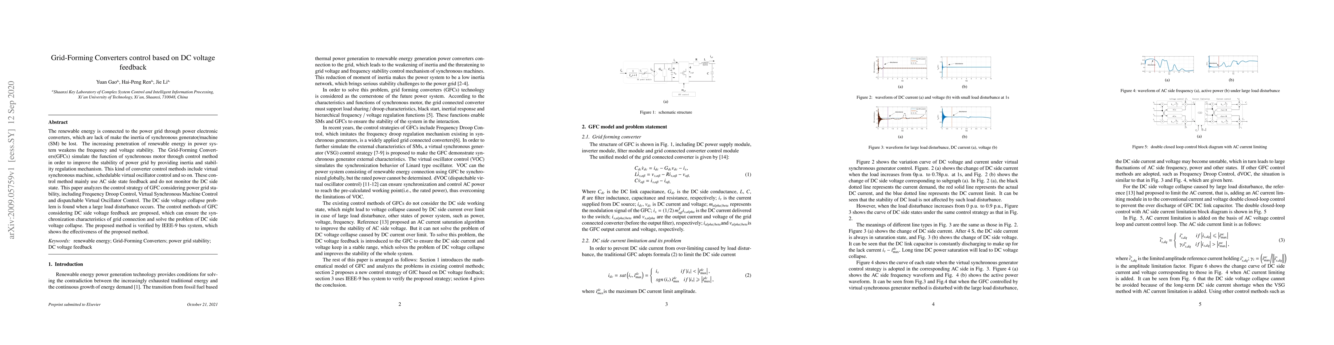 The renewable energy is connected to the power grid through power electronic converters, which are lack of make the inertia of synchronous generator/machine (SM) be lost. The increasing penetration of renewable energy in power system weakens the frequency and voltage stability. The Grid-Forming Converters (GFCs) simulate the function of synchronous motor through control method in order to improve the stability of power grid by providing inertia and stability regulation mechanism. This kind of converter control methods include virtual synchronous machine, schedulable virtual oscillator control and so on. These control method mainly use AC side state feedback and do not monitor the DC side state. This paper analyzes the control strategy of GFC considering power grid stability, including Frequency Droop Control, Virtual Synchronous Machine Control and dispatchable Virtual Oscillator Control. The DC side voltage collapse problem is found when a large load disturbance occurs. The control methods of GFC considering DC side voltage feedback are proposed, which can ensure the synchronization characteristics of grid connection and solve the problem of DC side voltage collapse. The proposed method is verified by IEEE-9 bus system, which shows the effectiveness of the proposed method.