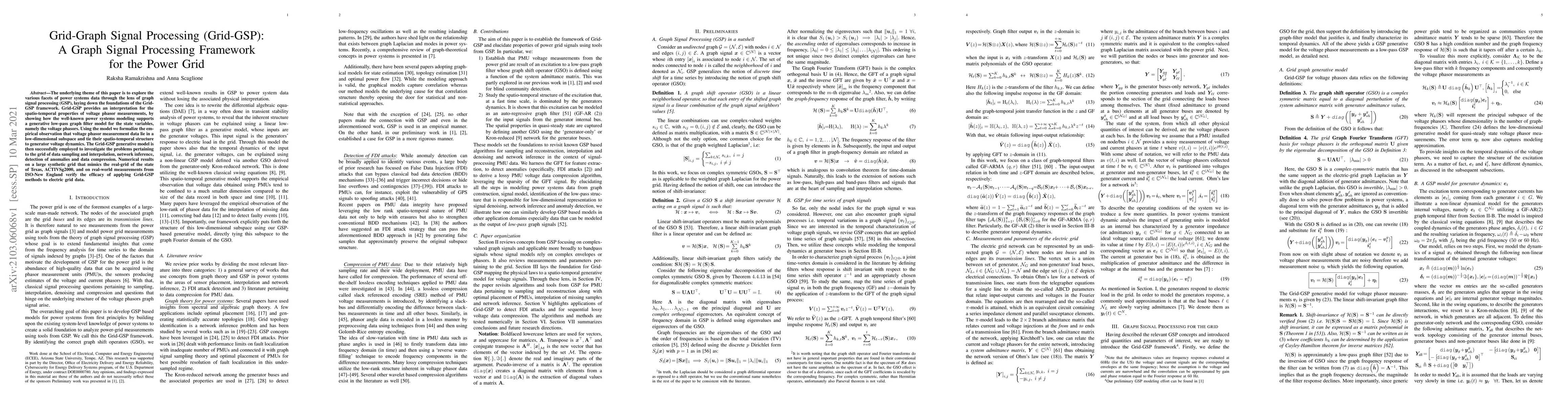 This paper introduces Grid-GSP, a framework for analyzing power systems data using graph signal processing, to interpret voltage phasor measurements and their spatial-temporal properties. The proposed generative model effectively addresses data sampling, interpolation, network inference, anomaly detection, and data compression, validated through synthetic and real-world datasets.