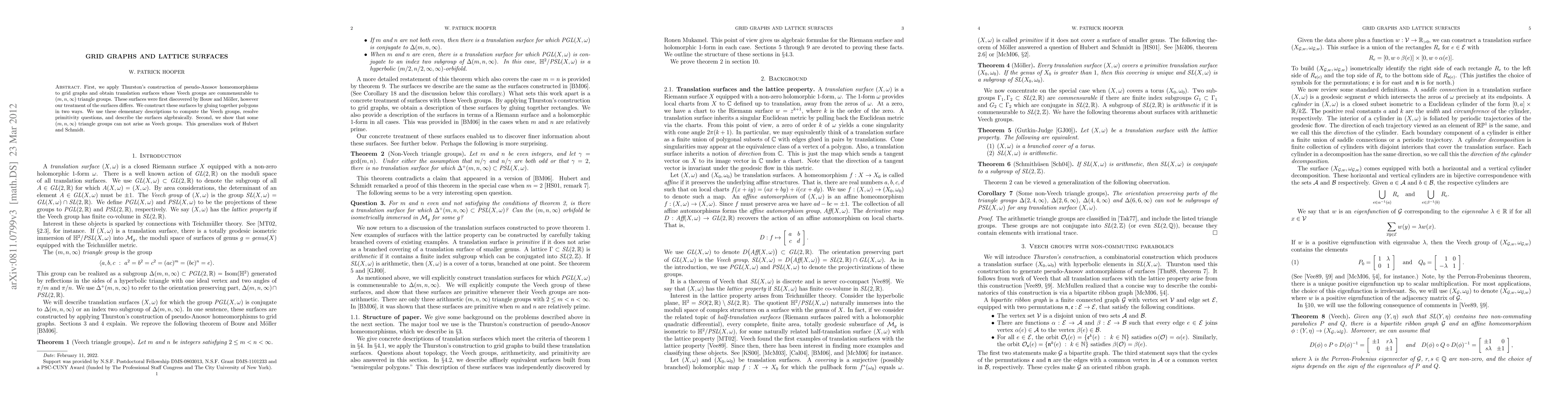The paper introduces a method for constructing translation surfaces with specified Veech group properties using grid graphs and Thurston's homeomorphisms, along with detailed computations of these groups.
