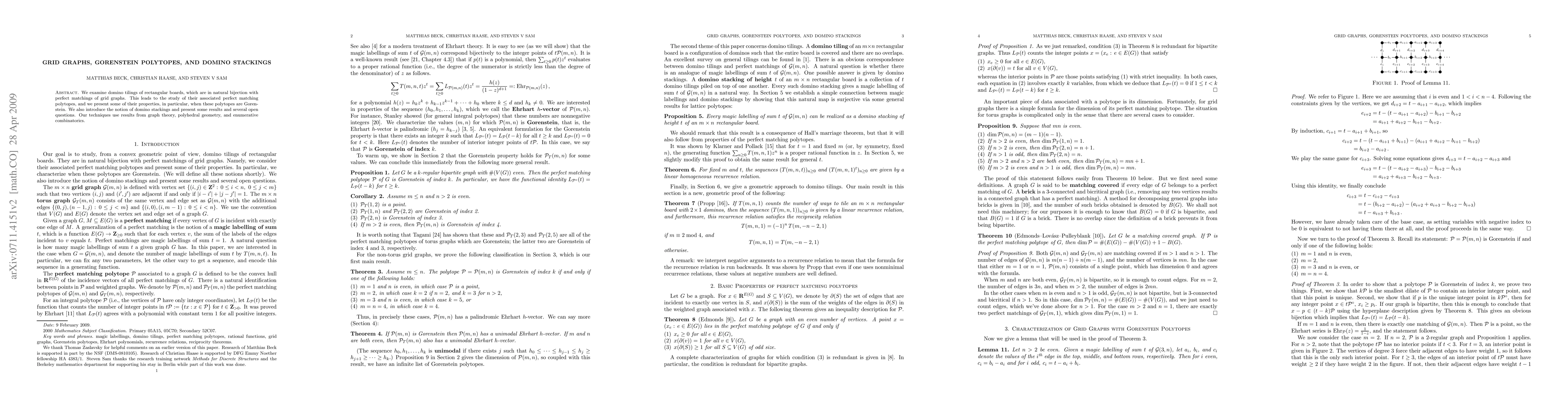 This paper explores domino tilings of rectangular boards via grid graphs and perfect matchings, investigating properties of their associated polytopes, particularly when these polytopes are Gorenstein. It introduces domino stackings and presents related results and open questions, employing methods from graph theory, polyhedral geometry, and combinatorial enumeration.