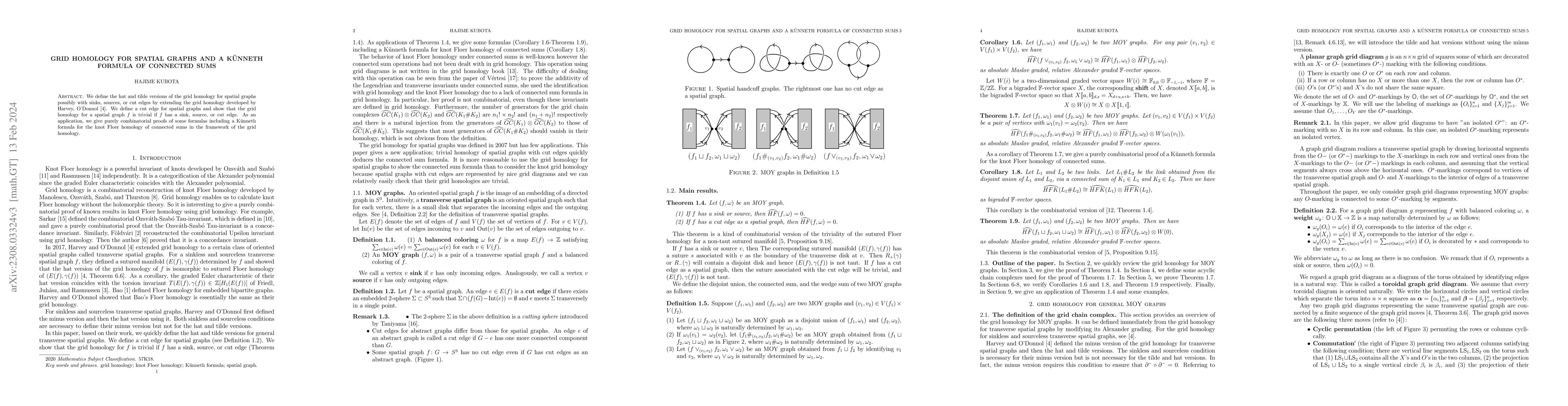 This paper investigates grid homology for spatial graphs, proving it is trivial for graphs with sinks, sources, or cut edges. It also provides combinatorial proofs for a K\"{u}nneth formula for the knot Floer homology of connected sums using grid homology.