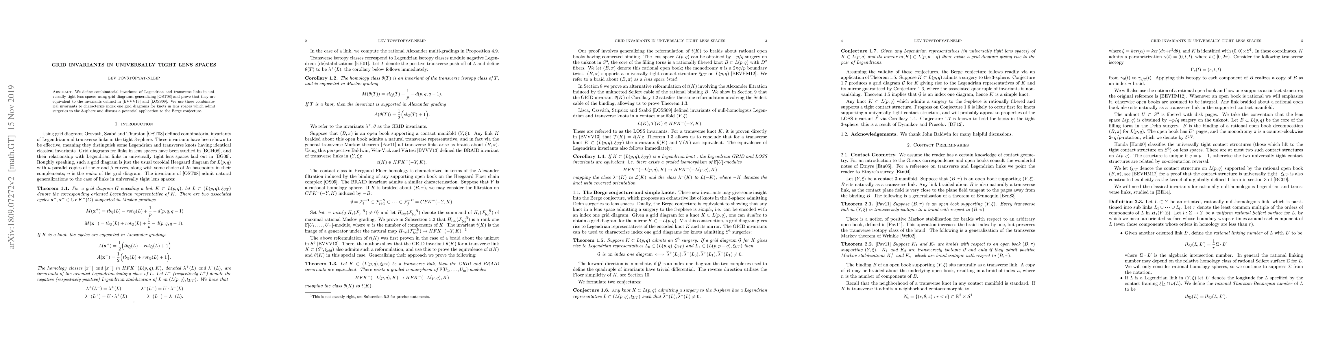 This paper introduces combinatorial invariants for Legendrian and transverse links in universally tight lens spaces via grid diagrams, proving their equivalence to previously established invariants. It characterizes index one grid diagrams for knots in lens spaces that can be transformed into the 3-sphere and explores a possible link to the Berge conjecture.