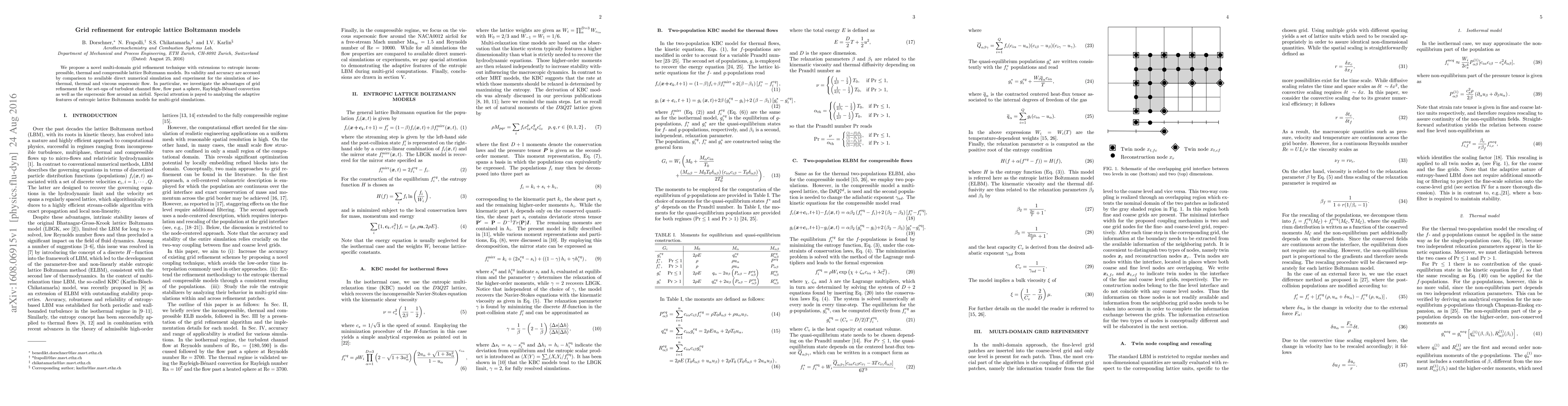 We propose a novel multi-domain grid refinement technique with extensions to entropic incompressible, thermal and compressible lattice Boltzmann models. Its validity and accuracy are accessed by comparison to available direct numerical simulation and experiment for the simulation of isothermal, thermal and viscous supersonic flow. In particular, we investigate the advantages of grid refinement for the set-ups of turbulent channel flow, flow past a sphere, Rayleigh-Benard convection as well as the supersonic flow around an airfoil. Special attention is payed to analyzing the adaptive features of entropic lattice Boltzmann models for multi-grid simulations.